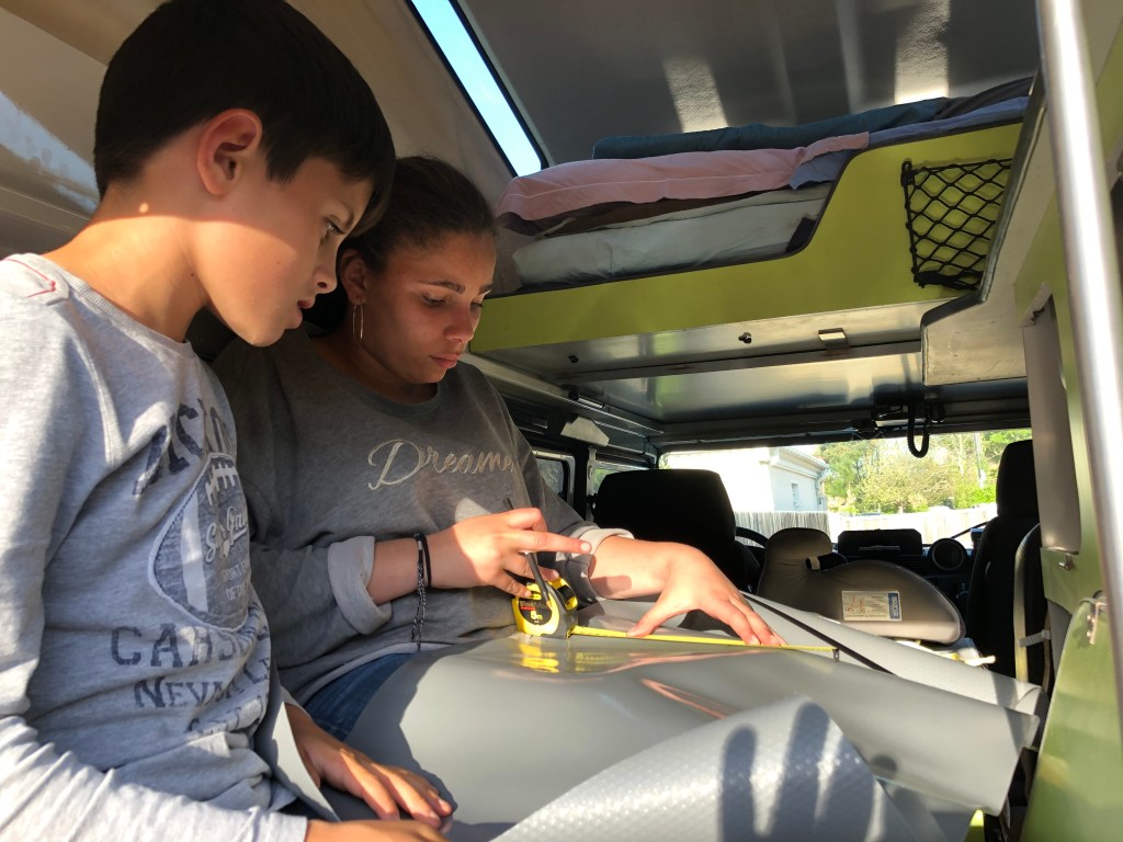 Reste maintenant le chargement a effectuer avec l’intention de ne rien oublier. Leila a fait les courses, les enfants ont préparé les placards et Pierre commence a assembler l’outillage et les pièces techniques à emporter pour se dépanner si besoin.