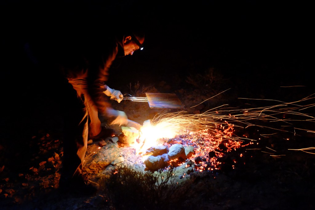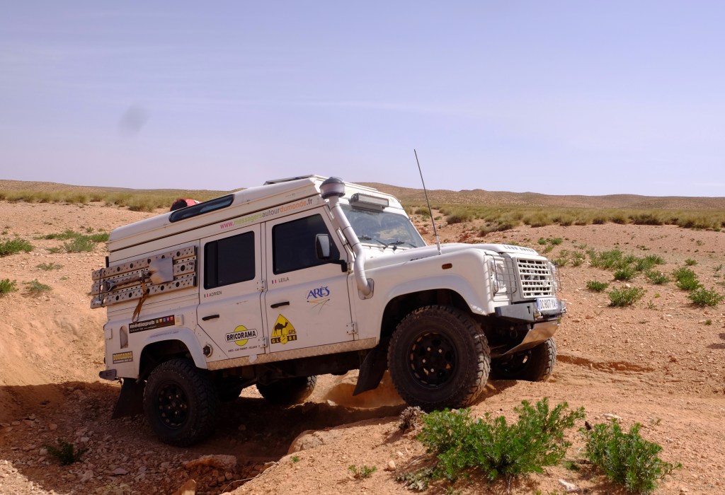 Ce soir bivouac, bien venté au bord d’un Oued . Notre Def a bien rempli son rôle en protégeant la tente des enfants d’un Eole très actif ! L’installation s’est faite sous les frontales avec une nuit tombant très vite à 20 heures locale ( -1h par rapport à vous ).