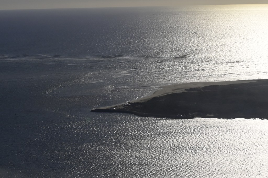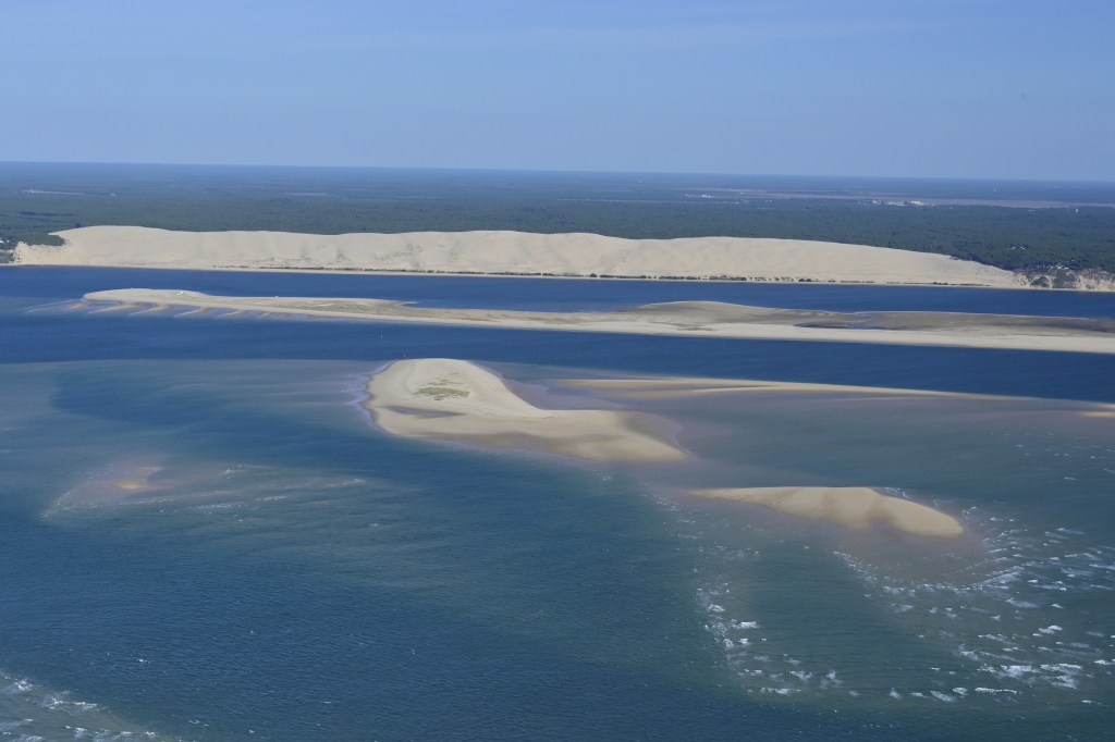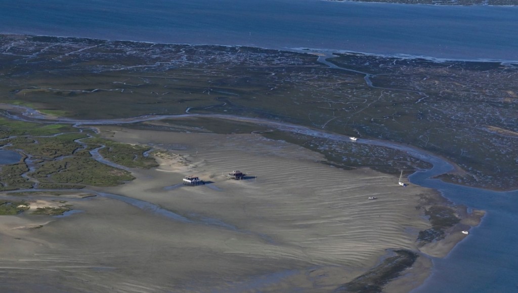 Oui, c’est le bassin d’Arcachon … avec les deux cabanes Tchanquée de l’ile aux oiseaux !