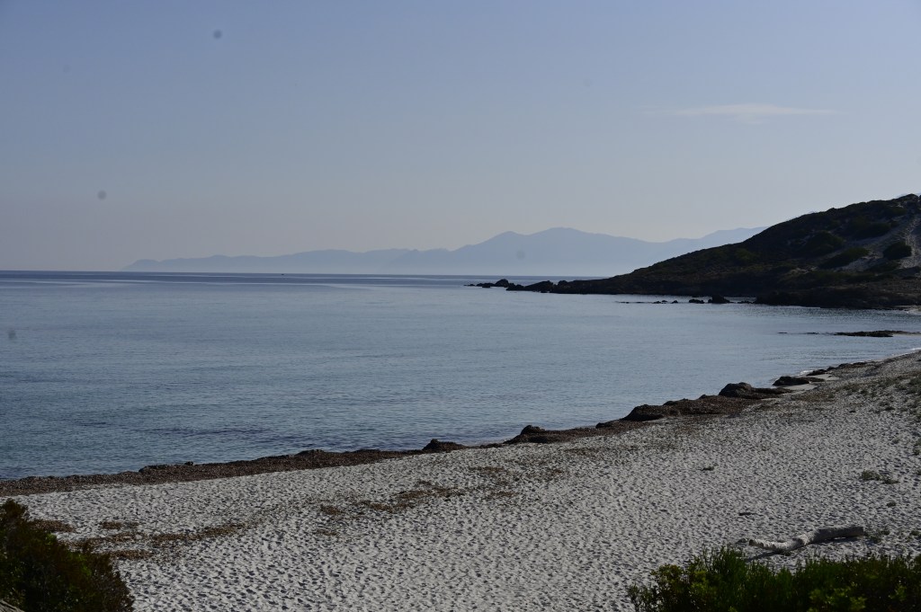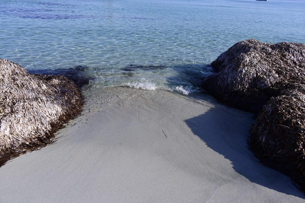 Ce vendredi matin, bain du matin sur la petite plage . Personne dans l’eau, jusque quelques bateaux qui sont restés au mouillage la nuit . L’endroit est encore plus sauvage que la veille, un vrai bonheur !