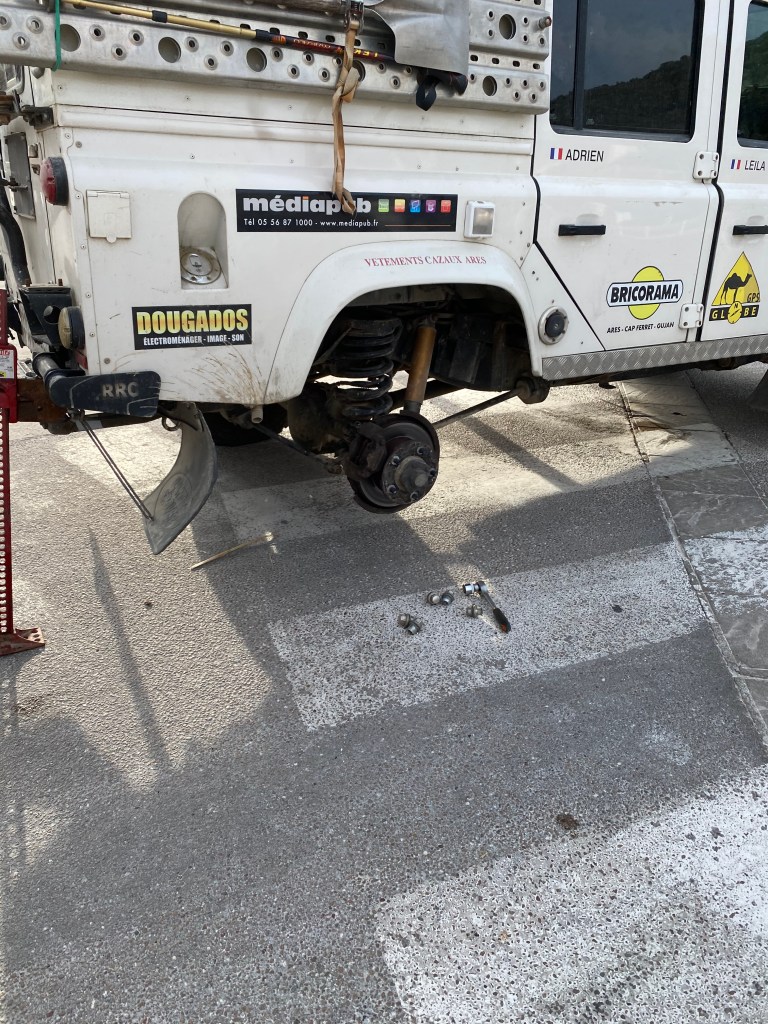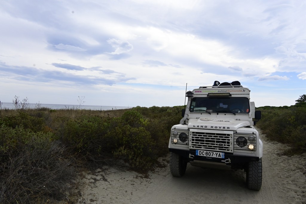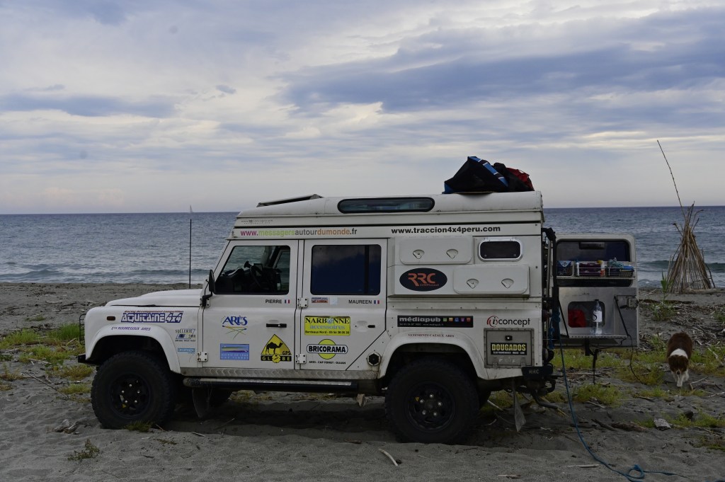 Le vent assez fort a forcé les autorités à fermer certaines régions comme celle du massif de Bavella où nous voulions aller ce soir et cela pour au moins deux jours ! Il nous a donc fallut revoir nos plans… pour une fois qu’on en avait c’est ballot ! Nous avons filé donc tout droit vers l’extrême Sud de la Corse avec comme étape Bonifacio ! Pas trop le temps d’en profiter sur l’instant car sur le port, nous avons du changer une roue crevée… sans doute une coupure sur les pistes acérées de l’autre jour et le pneu ne s’est déchiré que maintenant. En tout cas c’est irréparable donc nous allons continuer pour l’instant en live … sans roue de secours! En tout cas changer la roue devant des yachts de luxe, on avait jamais fait . En plus l’opération a été longue car pour démonter la roue de notre Def, c’est tout une histoire car il y a plein de choses à enlever avant . De plus notre cric Hi lift a perdu une pièce ( encore la piste sûrement avec les chaos) ce qui a compliqué les choses car Pierre a dû inventer un système permettant quand même de l’utiliser . Bon, notre ami le Def laisse nous tranquille jusqu’à notre arrivé, n’oublie pas que l’on est en vacances !!!