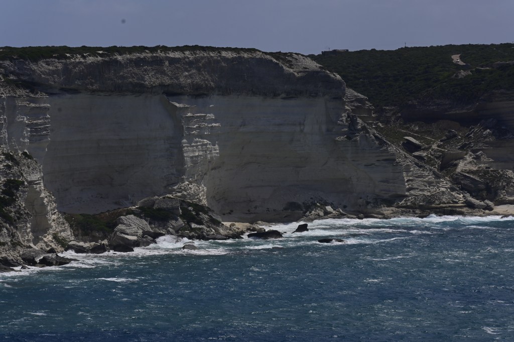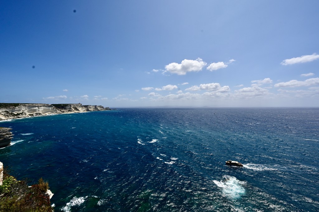 Malgré ses airs de tranquillité durant la saison estivale, les Bouches de Bonifacio figurent parmi les côtes les plus exposées aux fureurs de la Mer Méditerranée. Les tempêtes sont impressionnantes, le vent et la mer se déchaînent. L’érosion est une des conséquences naturelles de la violence des éléments. Elle a merveilleusement bien sculpté la côte de l’extrême-sud de la Corse mais si ici, à Bonifacio, elle menace les constructions bordant le littoral. au risque qu’un jour (lointain nous l’espérons ) la cité risque d’être ensevelie, mais nous n’en sommes heureusement pas encore là !