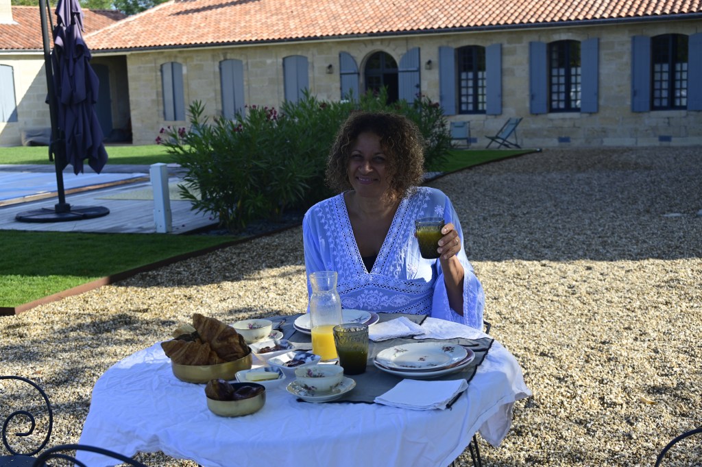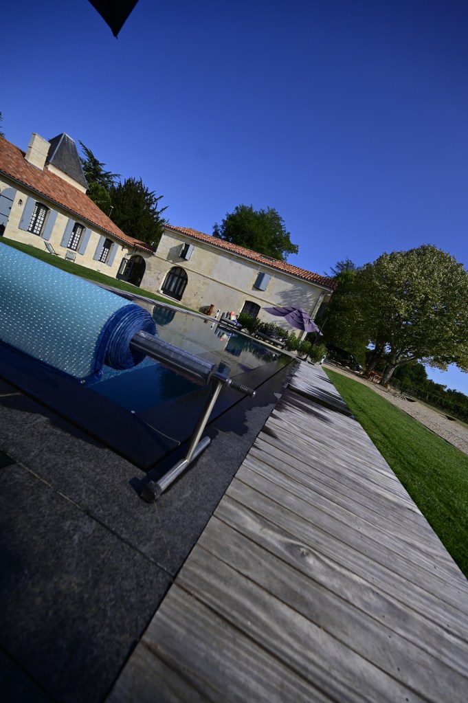 Nous avons décidé d’aller nager non pas sur notre bassin d’Arcachon mais au milieu des vignes de Saint Emilion. Ce choix était en partie du fait que nous voulions du calme et du repos et nous avons trouvé un chouette endroit pour ça : le chateau Beaulieu de Cloé. Une jolie demeure au milieu des vignobles avec une superbe piscine à débordement , une décoration raffinée, un calme subtil et un accueil divin par les maitres des lieux : Elodie et Olivier … des ingrédients au top pour passer de beaux moments ! De quoi nous donner aussi quelques idées pour notre chambre d’hôte à la maison que nous allons ouvrir aux vacances de Toussaint .