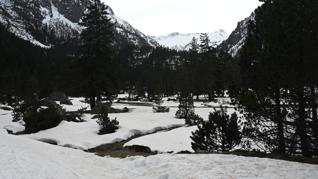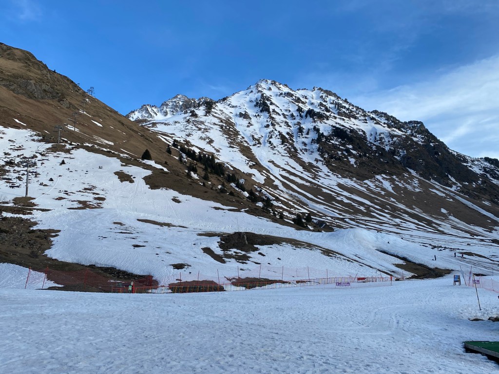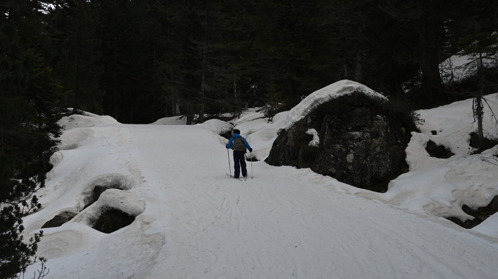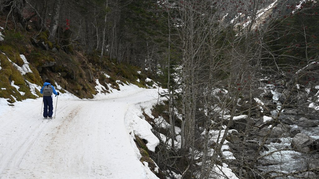 Fallait bien faire quand même un peu de glisse pour cette vadrouille … 45 ans sans ski de fond pour Pierre et une première pour Adrien, c’était donc l’occasion d’y aller. Fallait quand même trouver le lieu-dit, la neige restante était du côté de Cauterets avec aussi son flot de touriste mais heureusement la foule était resté collé aux boutiques du village … il n’y avait donc pas grand monde sur les pistes !