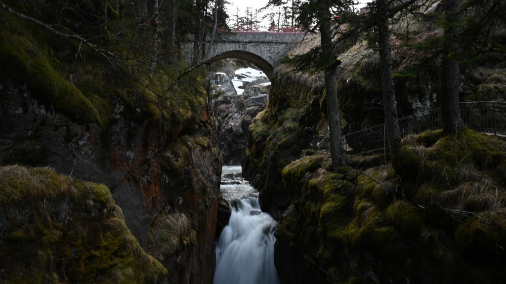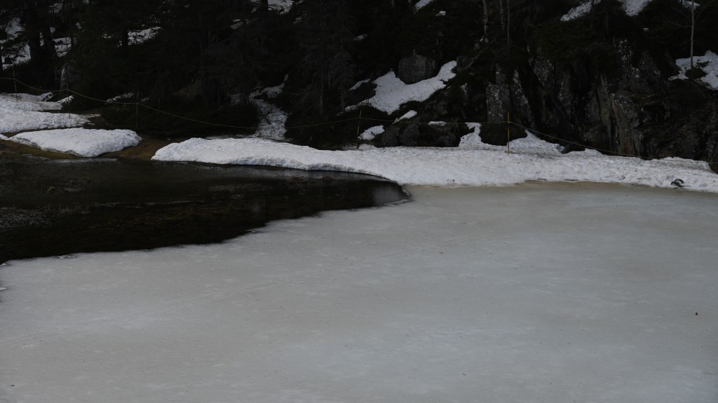 Équipement light pour le ski de fond ! C’est parti … avec une belle montée ! On glisse en accord avec la nature … On apprend la technique avec le pas alternatif…Là on est en pas de patineur deux temps l … allez avec un peu d’entraînement Adrien aura le style de Martin Fourcade ! Là on est en descente mais attention aux skis étroits, c’est cassé binette ! Évidement une nature magnifique et authentique ! Jolie cascade … Il y en a beaucoup dans le secteur … Là, un bout de lac gelé !Un joli coin encore juste avant l’arrivée . De beaux paysages encore aujourd’hui !