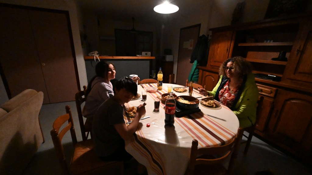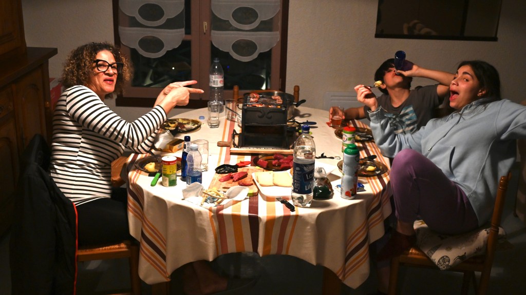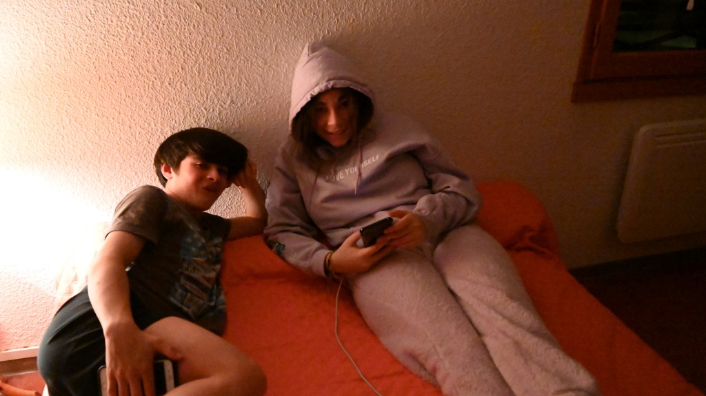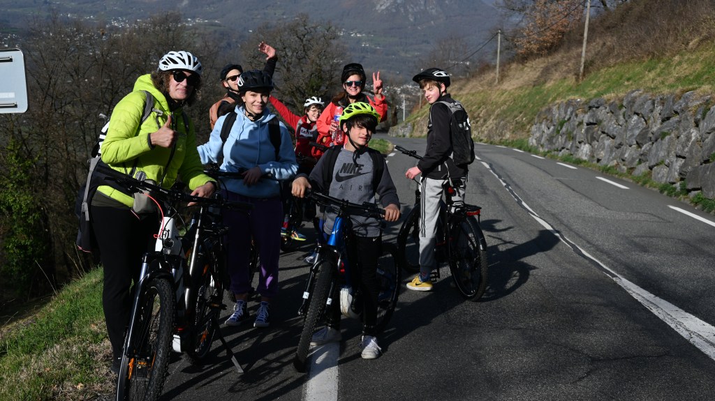 La journée tant attendue par la famille… David du superbe magasin l’étape des Pyrénnées avec son équipe nous a préparé notre matériel. Des VTT tout neufs, merci de la confiance car avec des débutants comme nous , fallait oser ! Le programme de la journée était donc la belle grimpette du Hautacam qui est connu des cyclistes pour le défi que constitue son ascension. C’est une des étapes mythiques du Tour de France et quand on pense qu’avant les coureurs ont franchis d’autres cols, on imagine leurs exploits ! Bon, nous c’était avec une assistance électrique mais on peut vous dire qu’il a fallu pédaler fortement quand même, la pente grimpe jusqu’à 11% et dans l’ascension des 16 kms , il n’y a pas de répit . Mais à chaque coup de pédale, des points de vue panoramique sur la Vallée d’Argelès, le Val d’Azun et les sommets du massif du Vignemale vous aident à aller jusqu’au bout de cette ascension hors catégorie ! Mention spéciale à Leïla qui avec son genoux « titane » a tenu jusqu’au bout . Momo a bien roulé également arrivant parmi les premiers au somment, tranquille mais efficace ! Nous avons partagé tout en plaisir l’ascension avec une autre famille ( Nicolas, Flora, Charlie et Simon) en faisant attention de ne pas faire un « cluster » en pleine montagne ! Après un pique-nique avec un balcon visuel hors du commun, nous avons pris une piste pour aller tester un peu la mécanique ( humaine et matérielle !) Là encore un paysage à couper le souffle… elles sont belles quand même nos montagnes ! Nous avons bien profité du plaisir des yeux avant de s’élancer pour une descente magique de plus de 16 kms ! Record battu par Nicolas avec plus de 73 km/h 👍 Les garçons ont fait eux plus de 65, jusqu’à la chute d’Adrien en plein virage avec plus de peur que de mal (égratignures et patte de dérailleur tordue ). Finalement une journée de sensations et d’efforts comme on les aimes . Ce soir, on nous quand même laissé notre repas fétiche mais sans le resto de la Couquelle . Les propriétaires de l’établissement nous on laissé gentiment le matériel (braséro forgé) pour que l’on puisse se régaler avec grillades , fromage fondu et patate à la crème ciboulette préparée par la chef « Momo »! Il paraît que demain on doit faire du ski nordique … bon on verra l ‘état du club et puis il n’y a plus trop de neige avec cette magnifique journée à 21°. Ce soir nos enfants sont bien fatigués mais ils ont beaucoup participé, c’est vraiment chouette de partager ses moments avec eux !
