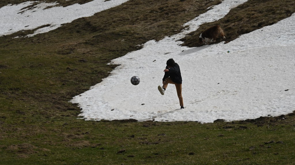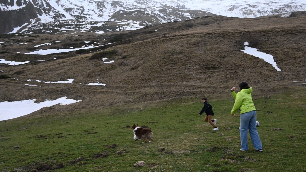 La neige est bien là, même si elle est timide par endroit Le plateau de Saugué avec un paysage magnifique …et ses fameuses granges !Le cirque de Gavarnie avec en bas, le village On aurait bien fait du ski de rando dans le coin WOUIPOPOW !La glisse à tout prix ! Top la balade…le genoux tient …sur la neige aussi !Mistral presque en lévitation ! Comme un fou dans la neige !La dégaine du sportif ! Infatigable, toujours à courir … mais où est donc le troupeau ?!Momo la star !En fait. Il y a 2 stars dans le CD 4 !Choupinou dans un bain de neige !Bien joli balai dans le ciel ! Notre Titine aurait été plus à son aise, elle nous manque ! Notre village du week-end : Gèdre La journée se finie en foot avec des copains !