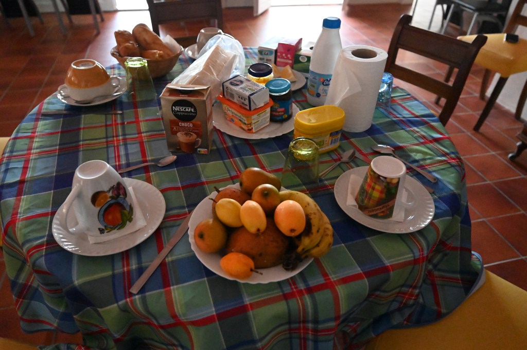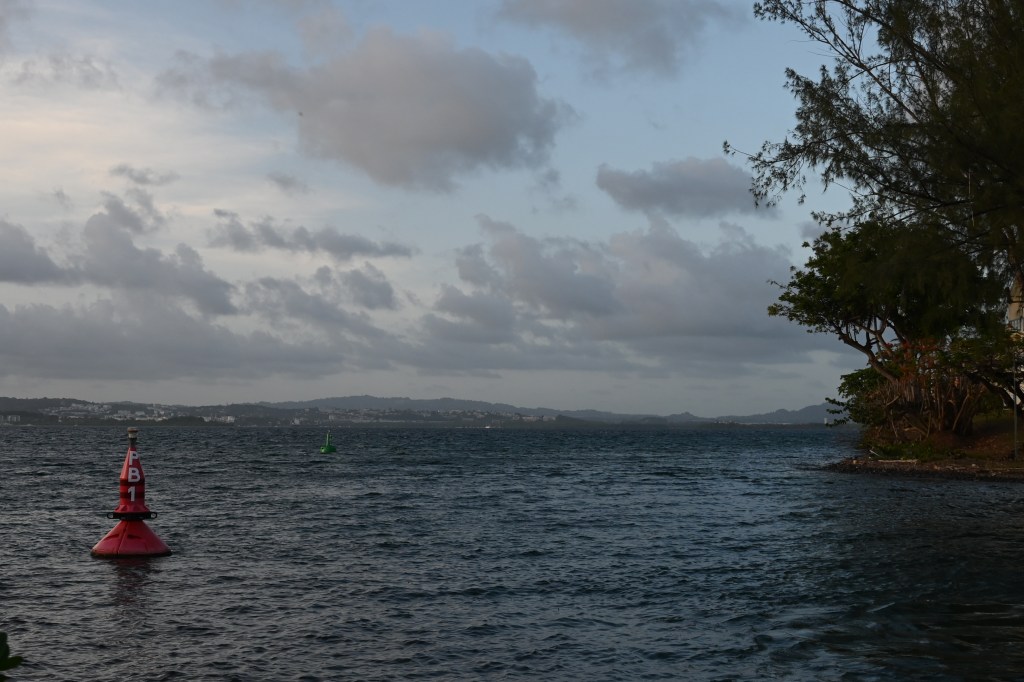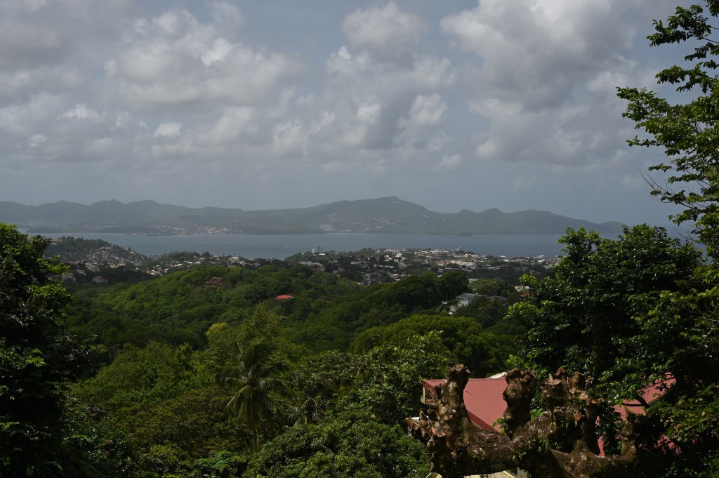Au petit matin, de la fenêtre … joli spectacle avec une belle vue sur la baie de Fort de France. Notre maison est grande et située sur les hauteurs de Balata. Une végétation luxuriante, un espace agréable et spacieux, même si la maison est humide et mal nettoyé pour l’arrivé de Leïla, notre logement est plutôt sympa !