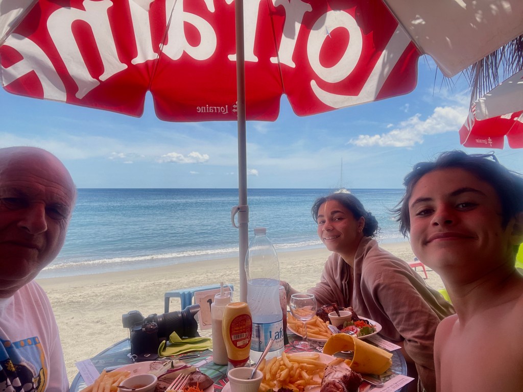 Quand on imagine une plage en Martinique, on visualise souvent le sable blanc, les cocotiers et l’eau cristalline. Et si c’est le cas pour beaucoup, d’autres plages ne ressemblent pas du tout à cela. Toutes aussi paradisiaques, les plages de sable noir près du volcan de la montagne Pelée sont étonnantes ! Le contraste entre la couleur émeraude de l’eau et la couleur noire du sable donne un beaucoup de charme . Nous avons jeté notre dévolu sur plage de l’Anse du Carbet longue de 1 kilomètre. Elle est bordée de cabanes de pêcheurs où nous avons dégusté du thon grillé avec de belles saveurs ! Les enfants se sont bien baignés en explorant avec masque et tuba les fonds à la recherche de poissons et étoiles de mer …