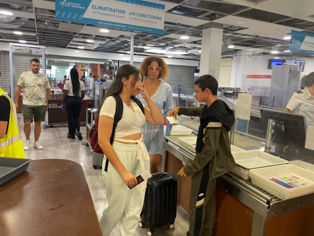 Nous avons été déposés par Doudou à l’aéroport de Bordeaux – Mérignac avec notre voiture que nous devions laisser jusque qu’à notre retour chez elle. Nous ne pensions pas qu’elle reprendrais la route aussi sec… Stéphanie revenant chez elle à Paris avec sa Maman est tombé en panne sur l’autoroute ! Pas de voiture de location disponible, aussi la nôtre étant au repos, elle a repris du service ! Il y a toujours une solution quelque part même si nous en avons douté un peu au Check in de notre vol à l’aéroport !
