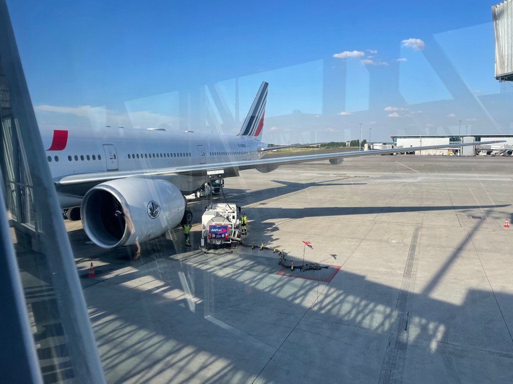 Il faut une « tonne » de papiers pour voyager à présent et forcément à 4, ça peut coincer quelque part ! Et bingo pour Momo avec un Pass-sanitaire non valable pour les États Unis. Ayant eu le Covid, elle n’a eu qu’une dose de vaccin mais visiblement il en fallait deux pour les US même si elle est encore mineure ! On ne peut pas dire que le gesticulant superviseur un peu dépassé nous a forcément facilité la tâche, on pensait bien rester sur le tarmac ! « Solution quelque part » et nous voici en quête de faire un test Covid d’urgence avec le 14 Juillet en prime . Heureusement l’aéroport propose des tests anti-génique … mais on nous annonce qu’il faut peut être un PCR et là c’était plus compliqué. Notre G.O se renseigne sans succès alors finalement on fonce à l’anti-génique et on force un peu l’histoire … Momo étant négative ( on s’en doutais, elle ne toussait pas ! ) et le tout passe à l’ordinateur et l’imprimante nous sort une carte d’embarquement. Stress assuré mais un « youpi » au final, Momo toute sourire peut partir avec nous mais rassurez vous on seraient resté avec elle si elle n’avait pas pu partir !