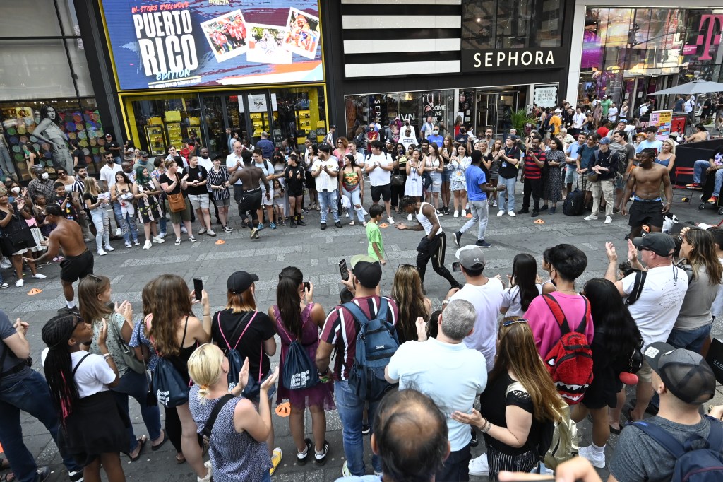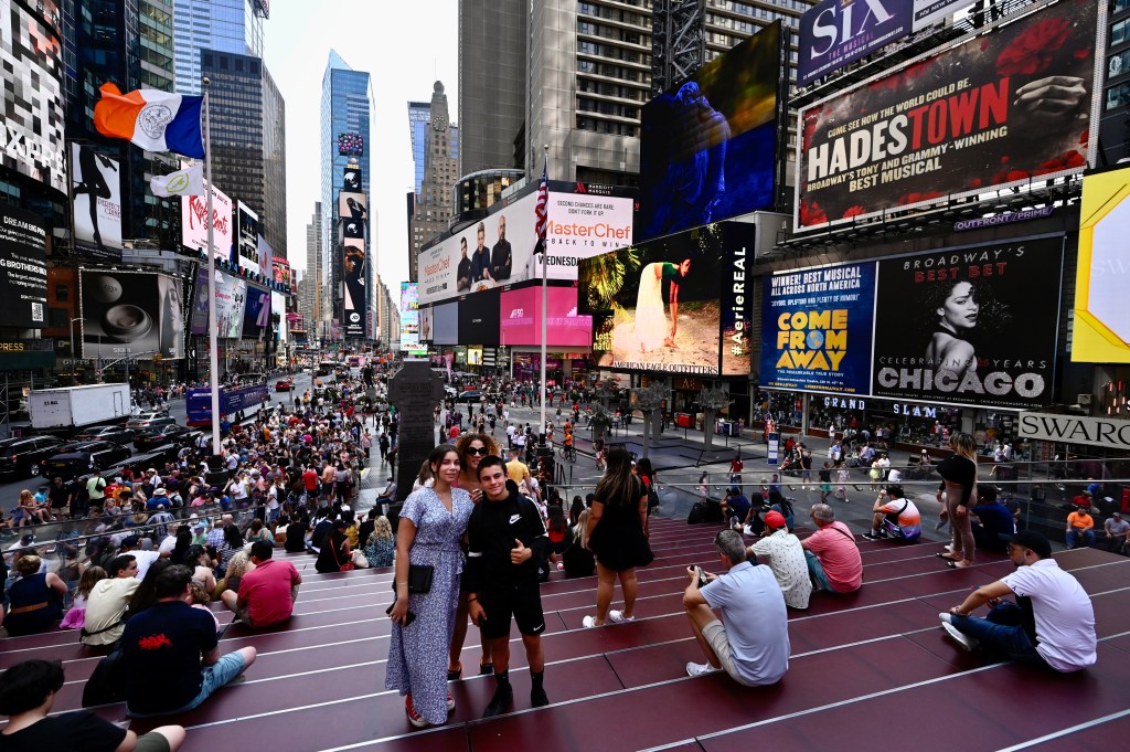 A quelques stations de métro dans le quartier de Rockfeller, se trouve le cœur de New York: Times Square ! Un torrent incessant et hypnotique de lumière scintillante, de panneaux d’affichages gigantesques et d’énergie urbaine à l’état brut. Même si elle n’a toujours eu une bonne réputation, la place fourmille constamment de passants faisant comprendre que ce lieu ne dort jamais ! C’est vraiment un endroit démesuré ou se mêle des artistes de rue, un Naked Cowboy qui joue de la guitare en slip, tout un tas de mascottes super-héros (Hulk, Spiderman, …), des bimbos promenant leurs formes sur la place… bref c’est un carrefour de folies à voir … bien loin de notre petit village d’Arès !!!