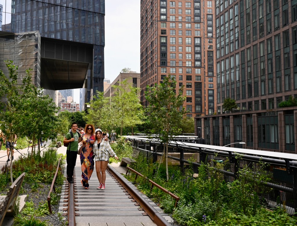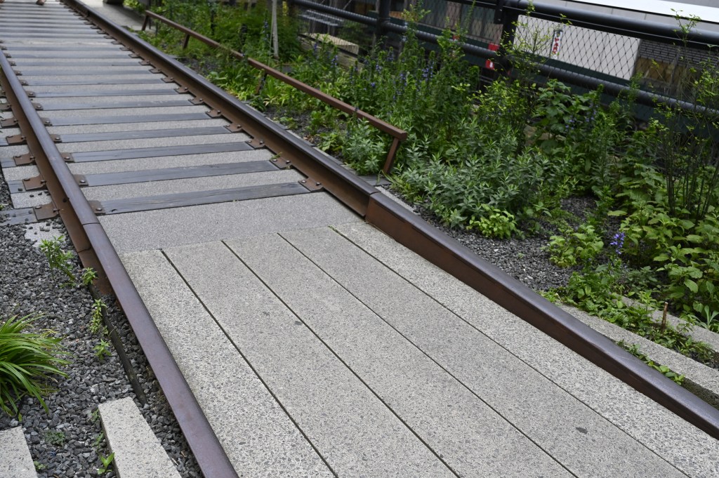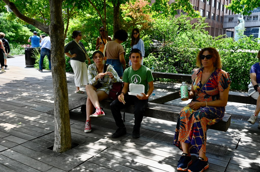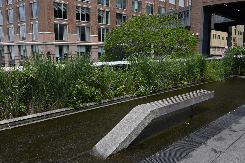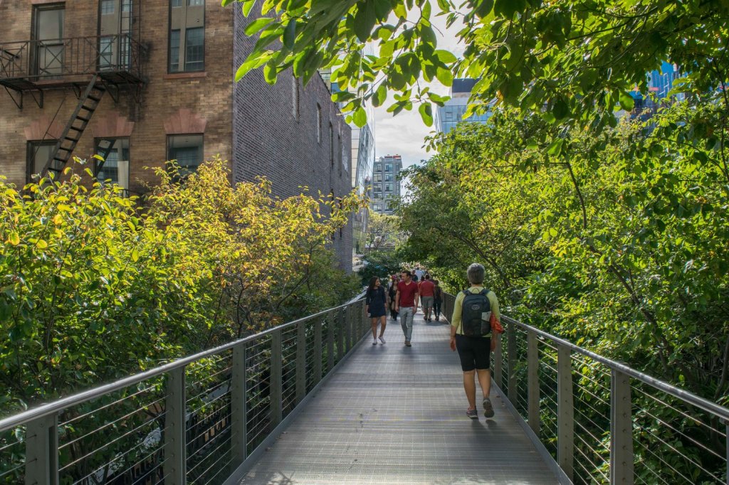 Bucolique début de journée sur la High Line après de 10 m au-dessus de la rue pour un parcours de 2 kilomètres de reconversion urbaine. L’ancienne voie ferrée qui reliait le quartier des abattoirs à Hudson se détériorant a été fermé dans les années 80 et a été réaménagée par un parcours de verdure parsemé d’œuvre d’art et suspendu au milieu des gratte ciel. Tout au long de cette espace public unique, des visites et des événements explorent des termes variés comme l’histoire, l’horticulture, l’architecture, l’art, la cuisine, etc… L’endroit est vraiment très agréable, nous avons beaucoup aimé !