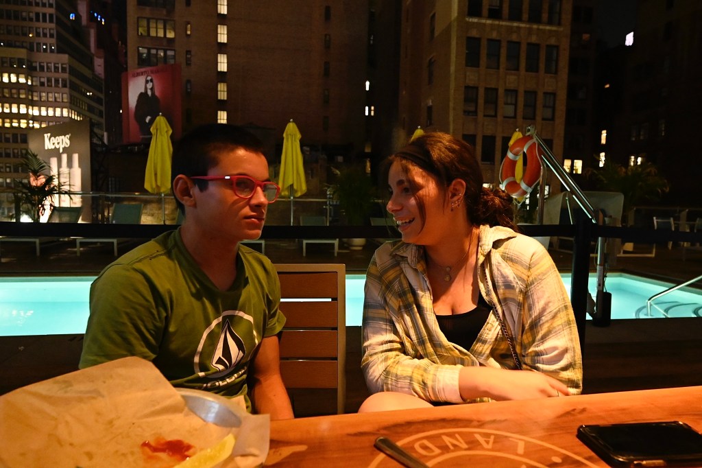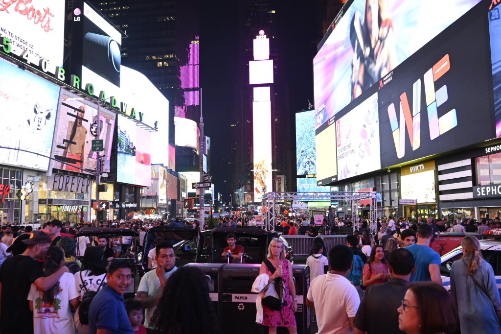 Pour le reste de la journée, nous avons marché sur les berges de l’Hudson avec une belle vue sur La ville de New-Jersey. Nous voulions passer une soirée dans la ville et nous avons choisi Time Square. Après un bon restau sur terrasse au bord d’une piscine, nous avons arpenté le coin où lorsque la nuit est tombe, les néons et les écrans géants baignent le plus célèbre carrefour de New York d’une lumière incroyable. Ça le coup de voir ça une fois dans sa vie !