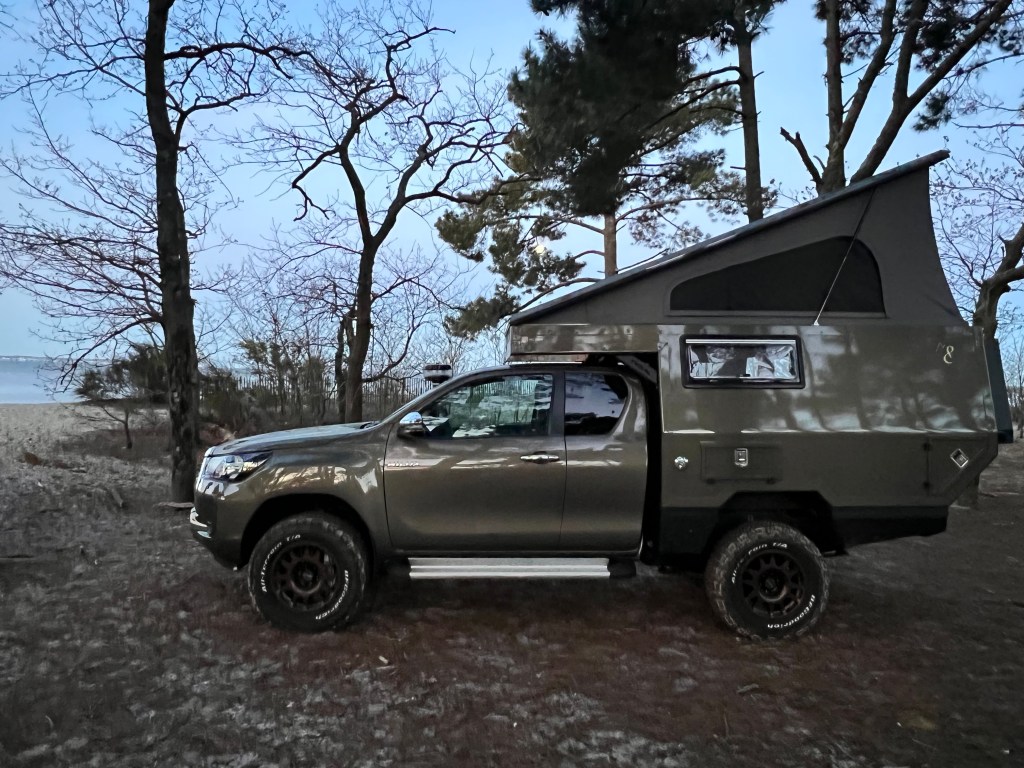 Notre Defender s’appelait « Titine « , notre nouvel engin de voyage est un Toyota Hilux … la contraction des deux modèles s’appelle donc TinHux ! Cette nouvelle monture nous ressemble, elle peut passer dans les pistes accidentées , pas trop grande, maniable, confortable, puissante et un look atypique ! Bref, l’engin de voyage ultime pour les 15 prochaines années. Au départ la cellule était vide ce qui nous a permis de l’agencer à notre style de vie, bref un modèle un peu unique que nous avons adoré à concevoir. On vous explique le mode d’emploi !