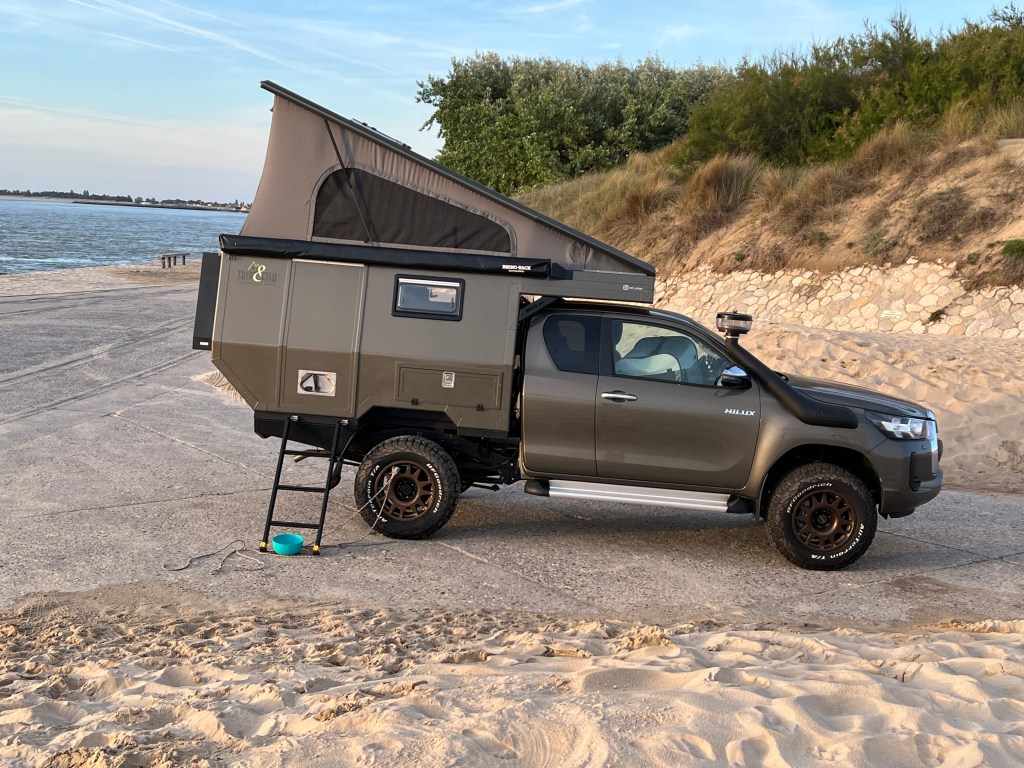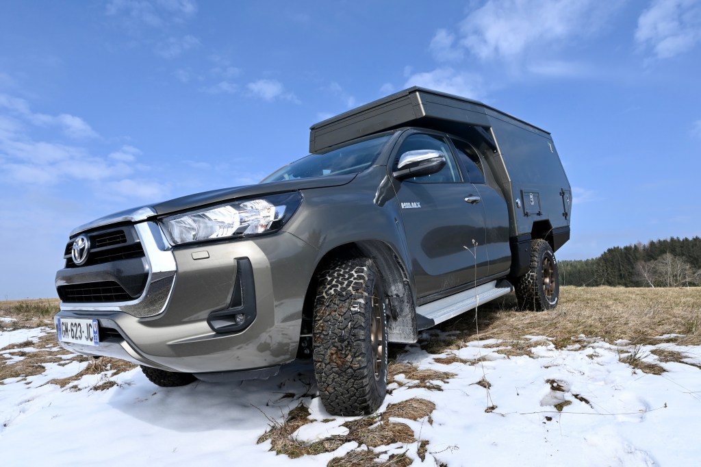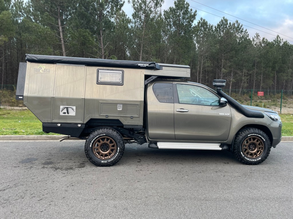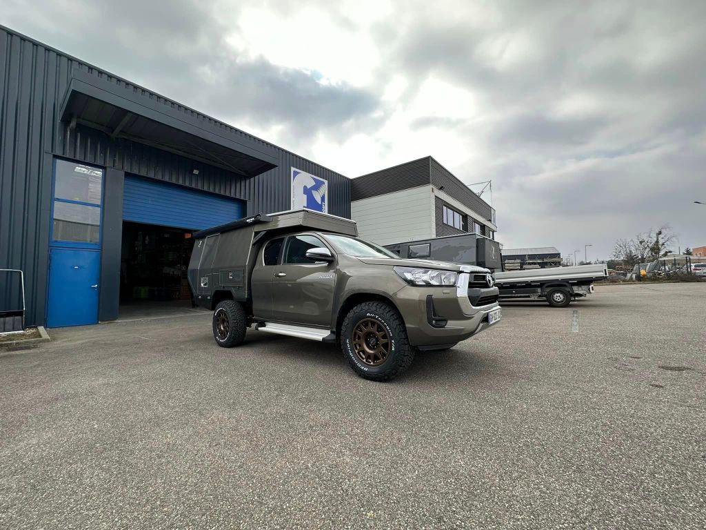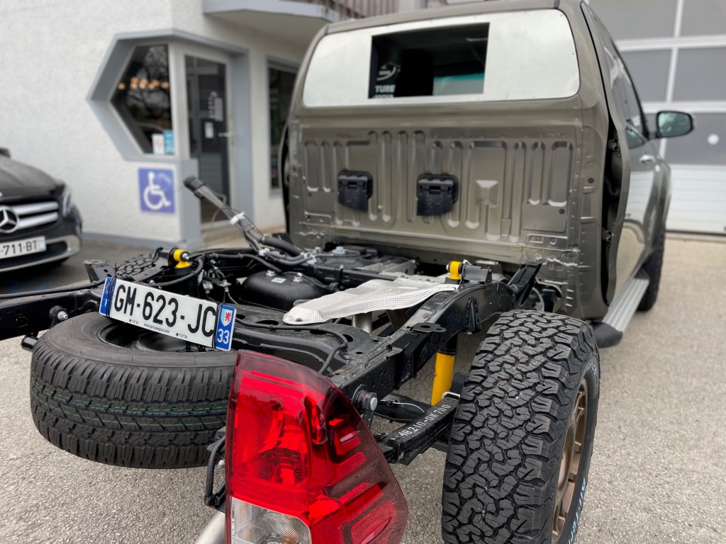 On a choisi le porteur avec un Toyota Hilux 2,8 litres, plus de 200 cv et boîte automatique . A la base on avait acheté un Ford Ranger mais nous sommes vite tombés en panne, aussi, nous avons préféré prendre un Hilux neuf .. on va en prendre pour 15 ans et pas question d’être en panne au bout du monde.