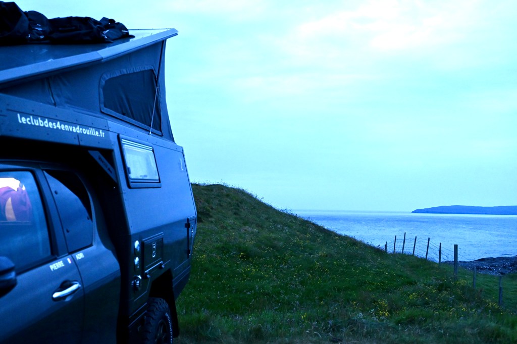 Après quelques manœuvres pour sortir du bateau, nous avons vite cherché un endroit pour dormir . Un héliport avec vue imprenable sur la baie à fait notre affaire pendant que la plupart des voyageurs sont allés au camping ! Ici on est seul 😞 , ça nous va très bien .Le camping sauvage est interdit sur l’île mais bon, vous nous connaissez ,on aime les spots un peu atypiques .