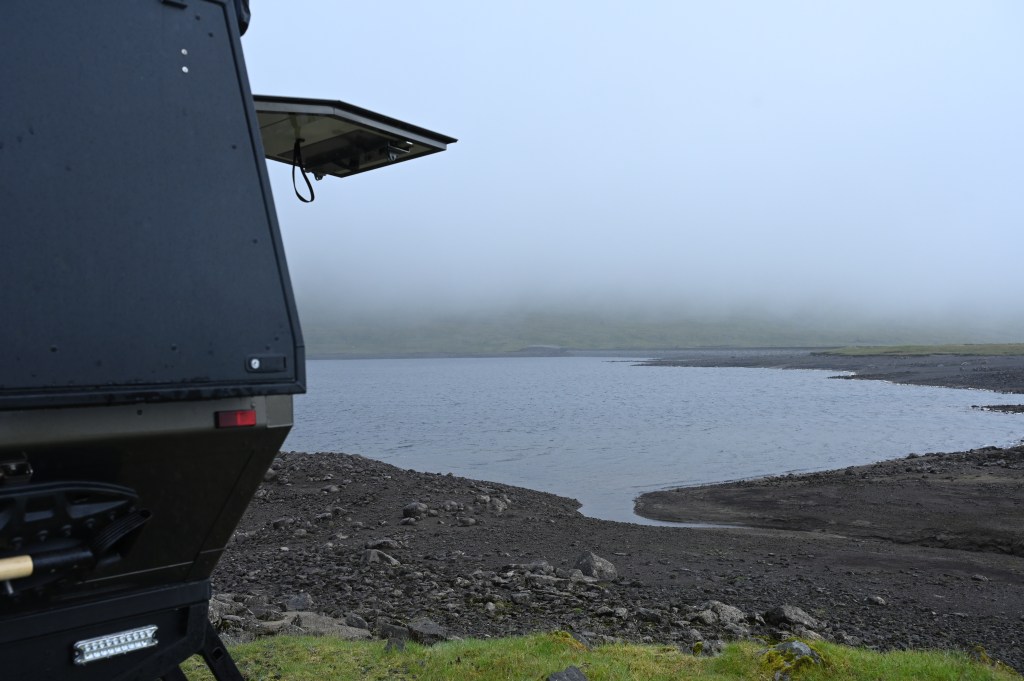 En attendant de vous donner nos premiers ressenti, un petit retour sur notre dernière journée au Féroé. La nuit a été plutôt ventée avec une température de 8 degrés beaucoup d’humidité. Il faut dire que nous étions dans les montagnes exposés à tous vents, heureusement que nous étions un peu protégé par une cabane car la nuit aurait pu être encore plus rude ! Mais l’endroit était très beau et nous étions tellement seul dans une très belle nature . Un lac à nous tout seul !