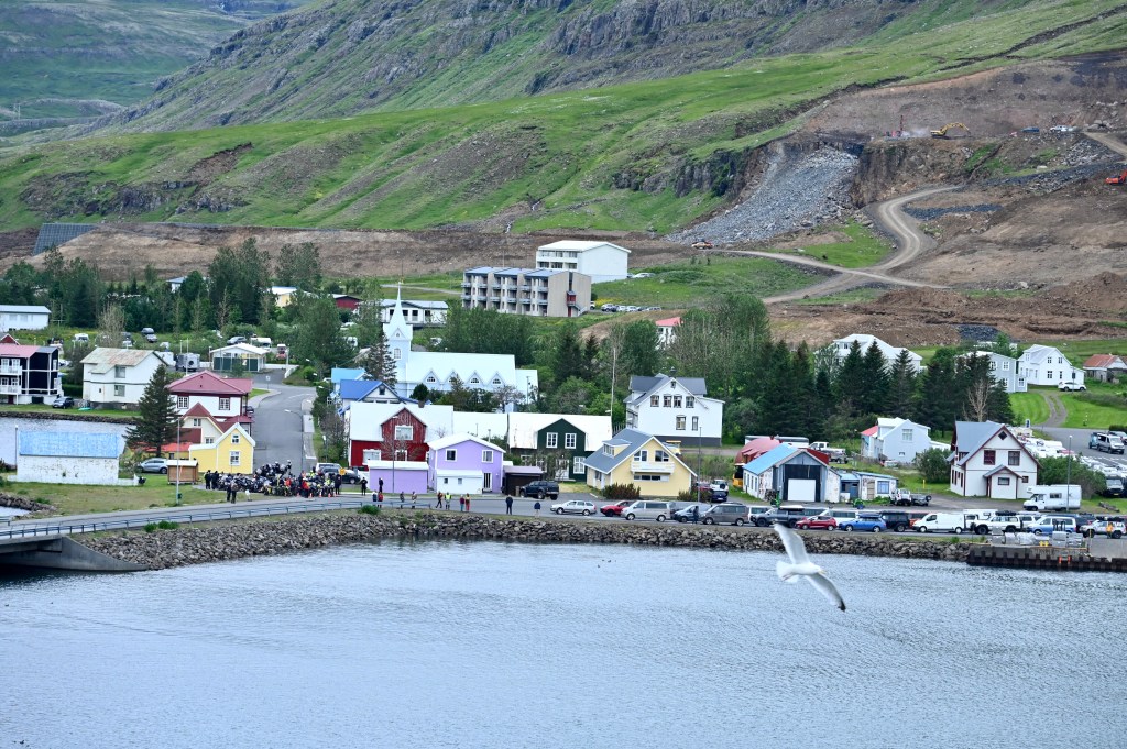 Arrivée à Seyðisfjörður avec une Température de 4 degrés et déjà une ambiance particulière ! On ne peut pas dire que le port d’arrivée soit très beau mais en tout cas il est très protégé en fond de fjord.