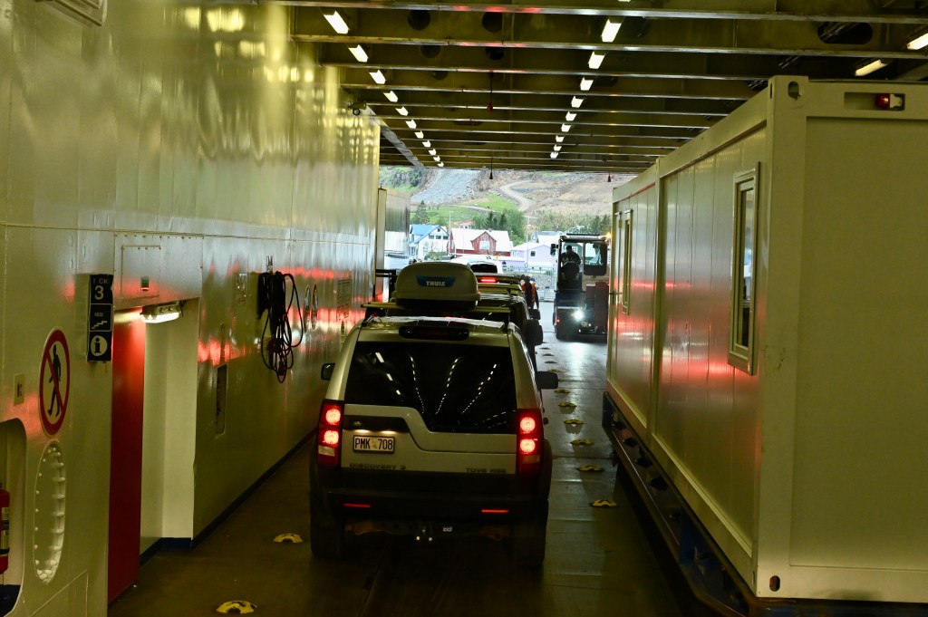 En fin de journée, après un bon petit repas dans un café typique, nous avons rejoins notre ferry pour l’Islande. La traversée a été un peu houleuse avec des creux de 3 à 4 mètres mais tellement heureux d’arriver à bon port.