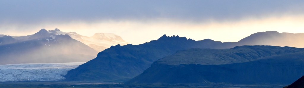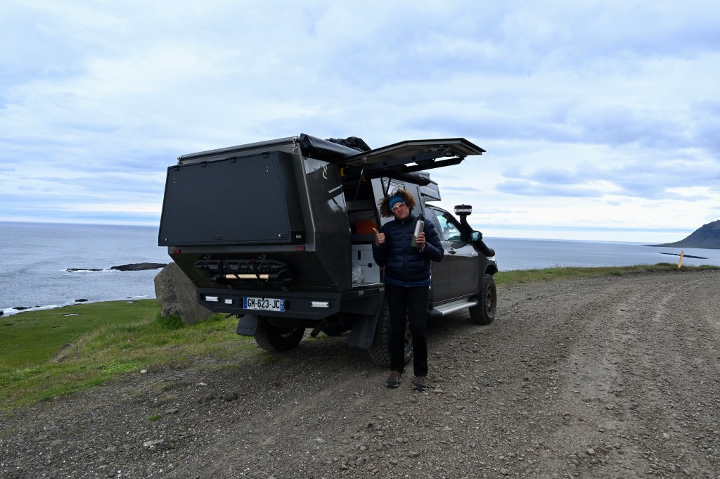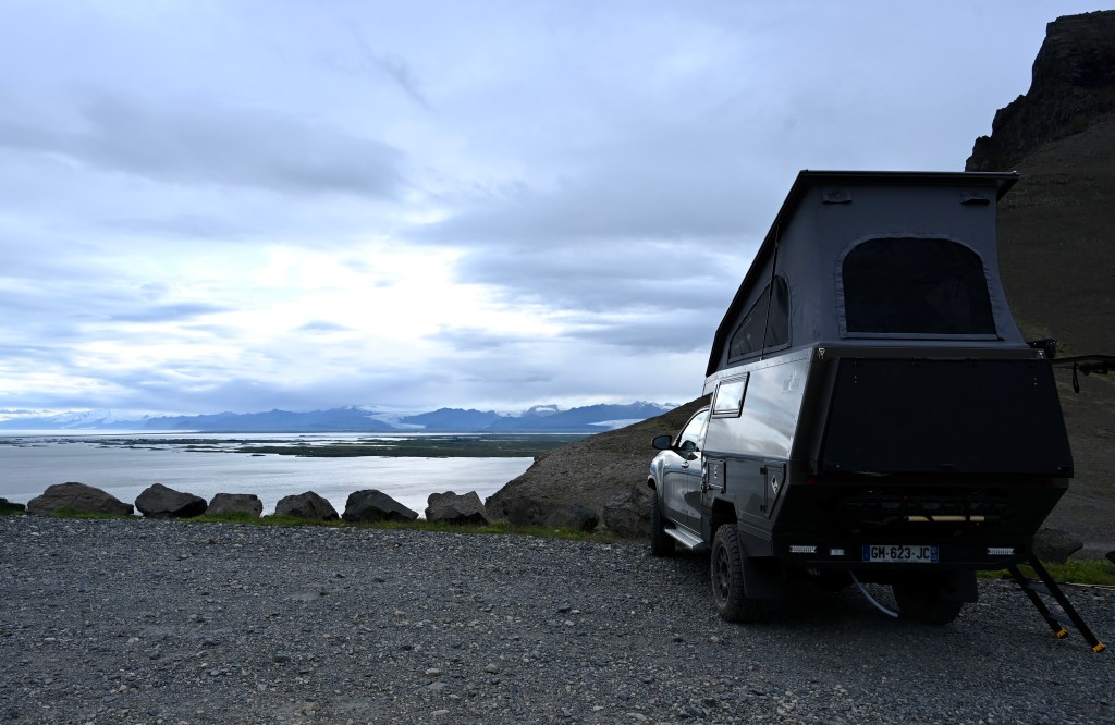Ce soir, recherche de bivouac, même si le camping sauvage est interdit sur l’île . Le camping est très cher ici minimum 65 euros pour nous 4 et puis de toute manière nous préférons tellement trouver notre endroit à nous, tout en respectant bien sûr la nature . Le spot du soir est grandiose, nous avons pris une piste qui monte pour se planter sur un promontoire avec vue imprenable sur 3 glaciers qui se termine dans la mer , magnifique 😻 😻 😻 . Premier repas en Islande avec haut spectacle et repas préparé presque gastro pour nous , aucun resto ne peut offrir ça ! On va bien dormir 😴, avec température fraîche bien sûr !