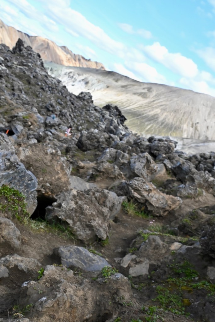 Donné comme étape incontournable d’un programme de voyage en Islande, Nous n’avons pas manqué cette étape avec ce paysage qui passe par un dégradé de couleurs magnifiques. Nous n’avons qu’effleurée sa beauté car le site propose des randonnées parfois difficiles , mais qui offrent un spectacle saisissant . Nous n’avons que superficiellement exploré le lieu, la prudence pour Adri ne nous permet pas de faire des randos de haute voltige, mais Pierre et Leïla se sont quand même modestement enfoncé dans ce territoire spectaculaire .