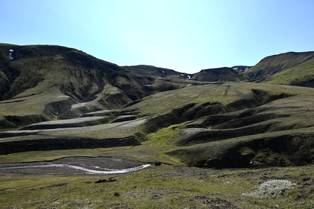 Ce soir, nous prenons la route vers le cercle d’or, un environnement dépouillé et sauvage avec chutes d’eau et geyser… de quoi vous raconter ! Nous avons un peu galéré à trouver un campement ce soir traversant une multitudes de barrages hydroélectriques, pas très fun puis à force nous avons trouvé en montagne une escale bucolique près d’un ruisseau!