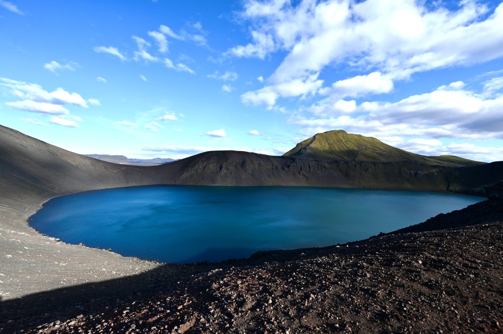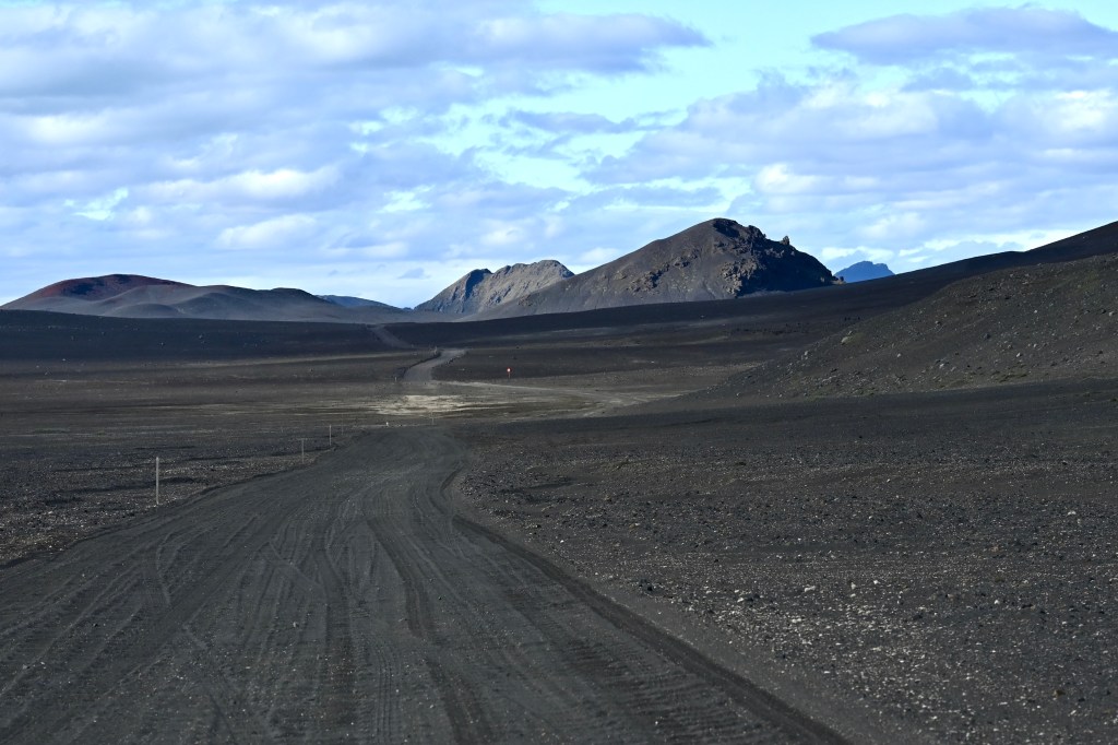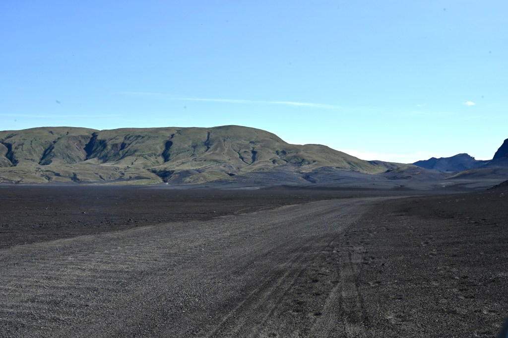 Pour arriver à notre destination, nous avons emprunté les fameuses « F roads » accessible seulement aux véhicules 4×4 . De magnifiques paysages déjà, qui en mettent plein nos mirettes ! Lacs , champ de lave, sable, espace désertique, névé … font parti du décor de ces hautes terres de l’Islande qui occupe une grande partie du pays. Un plaisir de rouler sur ces pistes même si parfois elles sont un peu « cabossées » !