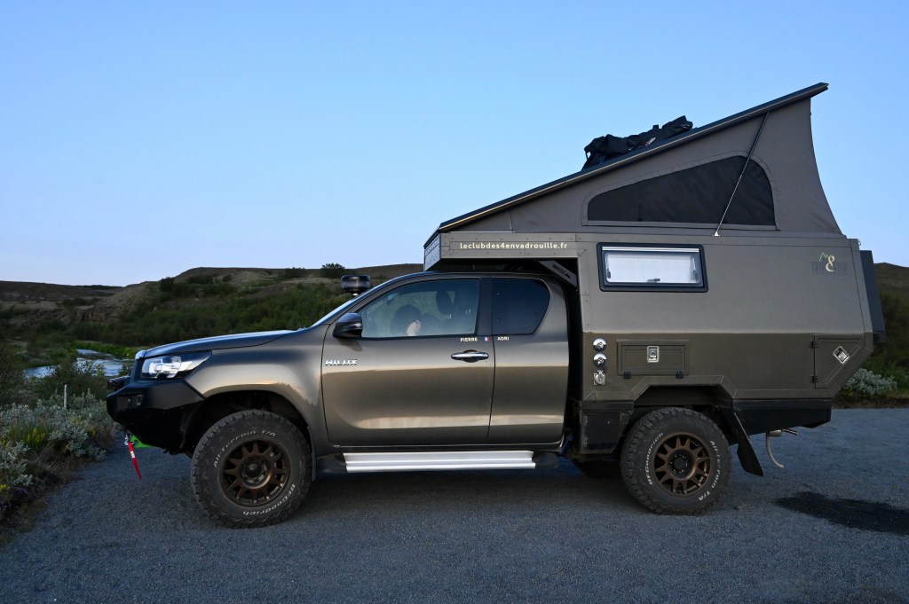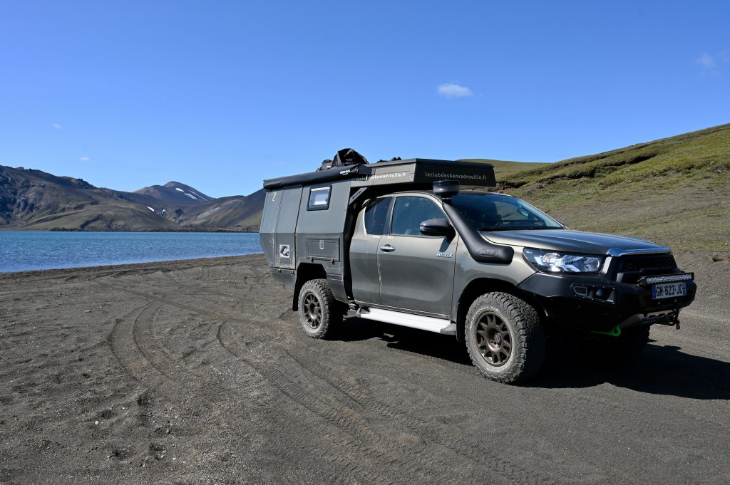 Petit rituel du matin avec copieux petit dej et toilettes, nous arrivons bien à orchestrer notre petite organisation. C’est sûr qu’à 4 , l’espace est compté et que tout a une place bien précise et Leïla doit jouer le chef d’orchestre pour que rien ne dérape ! Le tout est un peu fatiguant, devant bouger à chaque fois pas mal de choses et nous allons faire dans 2 jours un petit stop à Reikiavik histoire de recharger les batteries et avoir un peu plus de confort même si notre TinHux nous offre déjà un espace douillet . Et puis il faut aussi penser à lui avec une inspection de routine avec quelques vérifications après ses nombreux kilomètres de pistes !
