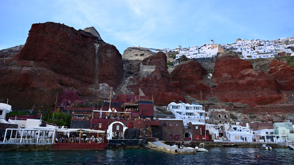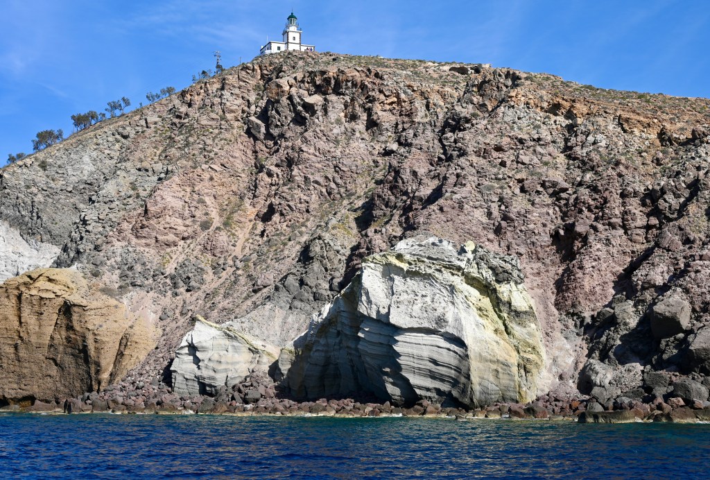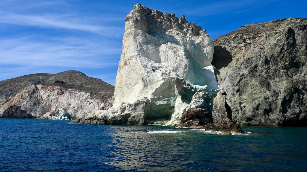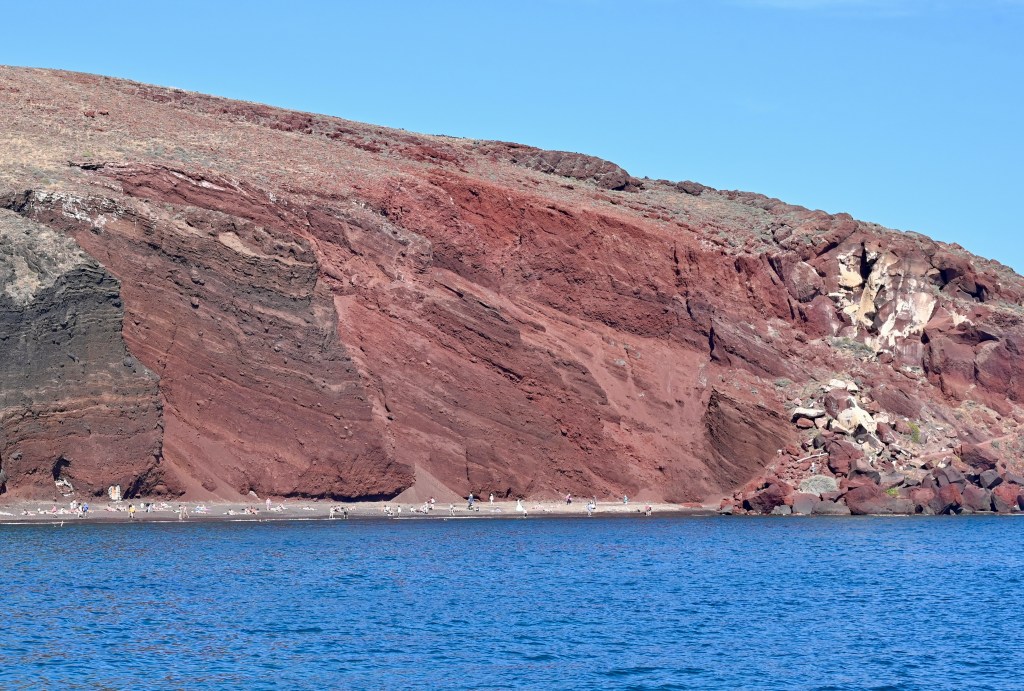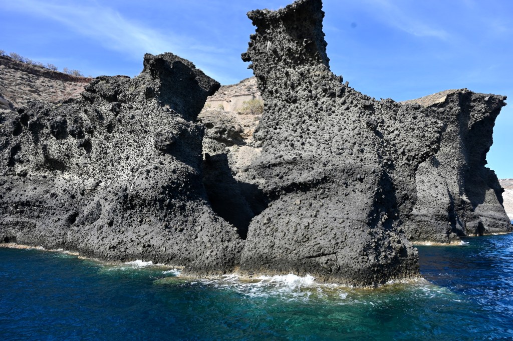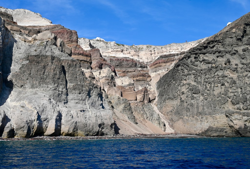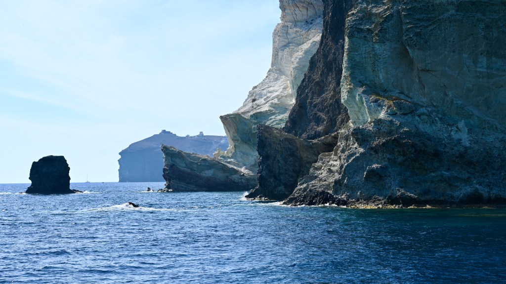 Pour découvrir Santorin, une expérience incontournable est à faire ! En effet, comment mieux apprécier les falaises de Santorin qui font entre 150 et 300 m de haut que depuis un bateau qui explore la caldeira ? En naviguant entre les îles de l’archipel volcanique, il est difficile de croire qu’il s’agissait autrefois d’une seule grande masse terrestre qui a coulée lors d’une énorme éruption . Mais cela permet de voir les strates de roches qui enregistrent l’histoire dans les falaises, et de découvrir comment les humains les ont colonisé tout en haut.