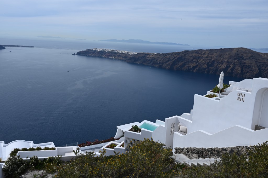 Il y a longtemps que Leïla attendait cette vadrouille en amoureux . Nous avons choisi cette île car elle nous semblait simple et surtout tranquille à cette période de l’année qui en fait ouvre vraiment la saison touristique . Le moment idéal ou tout est ouvert et le flot pas encore vraiment là . Pas trop chaud non plus, bref the good time ! Pour ce premier jour, du repos pour prendre nos marques et juste une petite escapade à Fira ! C’ est la capitale de l’archipel de Santorin et c’est aussi le village le plus peuplé. C’est ici qu’il y a le plus d’animation et le plus de vie. Fira est un village touristique mais aussi un village qui vit à l’année. L’ambiance y est vivante, intense et plus authentique que dans d’autres villages de Santorin. De par sa situation centrale, Fira est aussi l’endroit incontournable. Sur Santorin / Santorini, tout rayonne autour de Fira mais nous avons préféré loger dans un endroit plus tranquille à l’abri de trop d’activités . Bonus, Fira a la vue de carte postale ! Nous avons repéré aussi un petit port départ de petite croisière à la journée en catamaran… là aussi, pas de Pierre à la barre on va se laisser porter jusqu’au coucher du soleil ☀️ On vous parlera de tout ça demain avec en plus la découverte de l’île et de la caldeira .