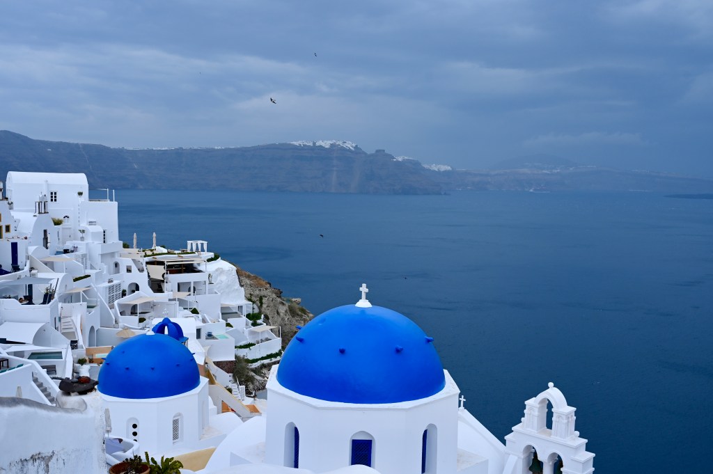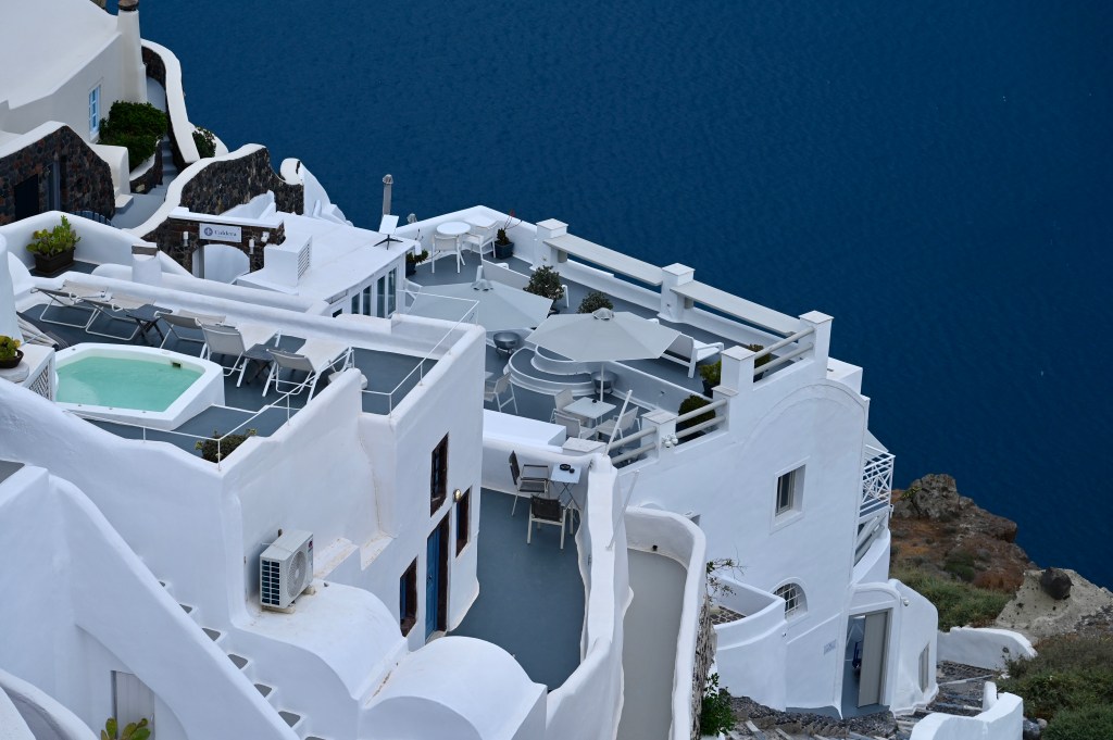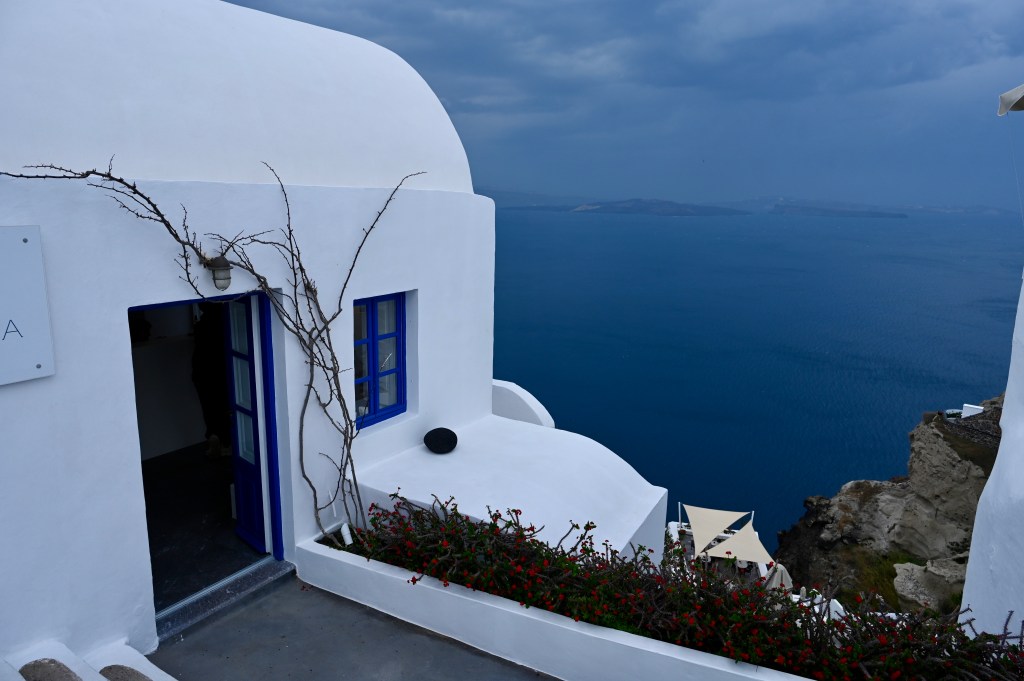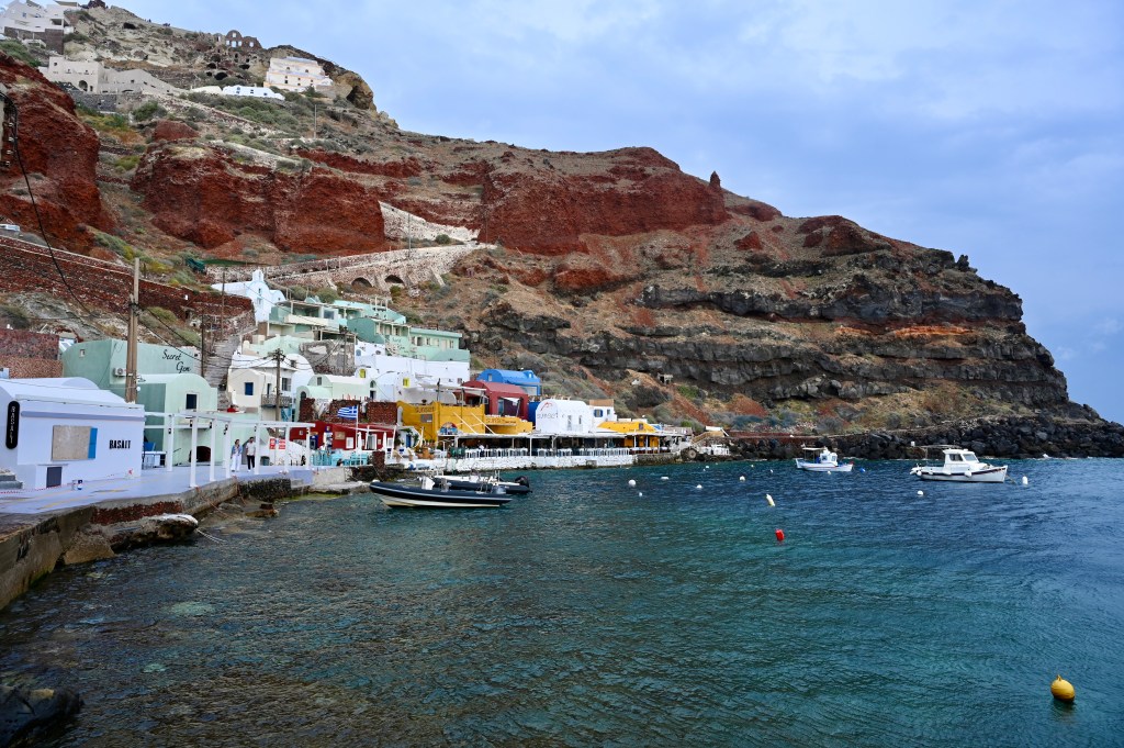 On peut dire ce que l’on veut de Oia , notamment ce qu’elle est devenu avec ses boutiques de luxe et ses restaurants qui s’alignent avec des terrasses sur mer et aussi ses hôtels incroyables… Il n’en reste pas moins que le charme est réel, la vue saisissante sur la baie et son volcan, les dômes bleu lumineux perchés au dessus de la caldeira, les maisons blanches aux formes tout en douceur, la baie d’Ammoudi avec son port niché sous la ville entre les rochers, les couchers de soleil qui embrase le village … . Tous combinés les uns aux autres, ces éléments crée un magnifique paysage idyllique, oui, Oia vraiment c’est la pépite de Santorin !