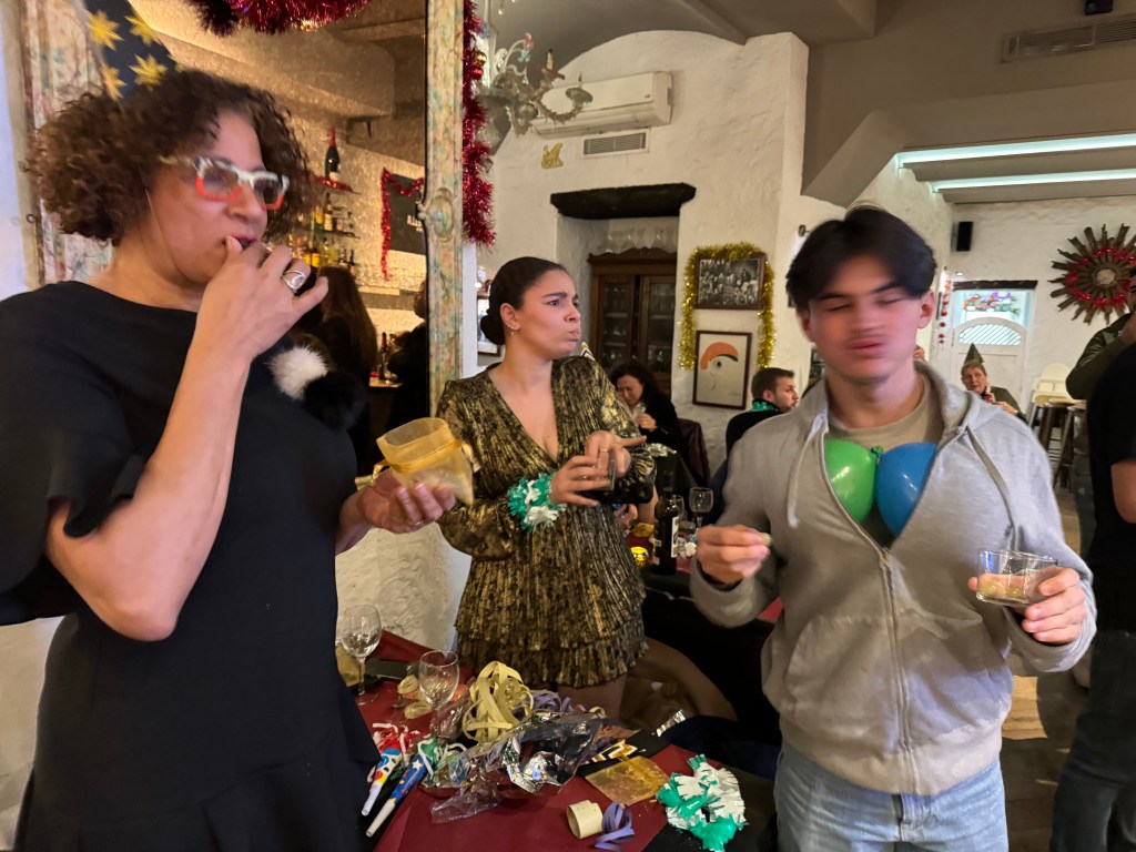 Joli panorama de la station de ski de BaqueiraMimi s’il ne fait pas de ski s’amuse avec des boules de neige !Petite étape à Tavascan, un joli village plein de charme … Petit repas bien mérité avec pas mal de kilomètres ! Jolie ruelles du village … Petit tour en Andorre … le vrai prix du carburant ? En France on a des progrès à faire !!!La plage de nuit près de notre appart !Mimi bronze sous les rayons de la lune !Le musée de DALI à Figueras Du loufoque… quel artiste !De l’atypique …En tout cas un musée exceptionnel !Cadaques, tout en charme avec un caractère méditerranéen tourné vers la mer !Le littoral est rocheux, parsemée de belles criques isolées … un charme fou !De jolies couleurs au couchant ! Une des nombreuses criques de CadaquesNous loulous près de la maison de Picasso ! La maison de Salvador DALILe réveillon s’approche ! La ville de Cadaques se fait belle pour l’occasion ! Pour une fois, on ne prépare rien, direction resto … un bonheur 🥹 Adri et Momo, les inséparables ! Madame Cotillons ! Monsieur Cotillons ! C’est minuit … Vive 2024 ! La tradition des 12 grains de raisin, représentant les 12 mois de l’année ! A déguster sans modération !Les loulous espèrent une belle année ! Meilleure que la précédente pour certains ! On déballe tous les cotillons !!!Merci Marie France pour ta carte de belle année toujours fabriquée avec amour 😍 . Là aussi une tradition ! Belle année, à toutes et à tous de la part du CD4 . Plein d’amour et de sourires 😀 !