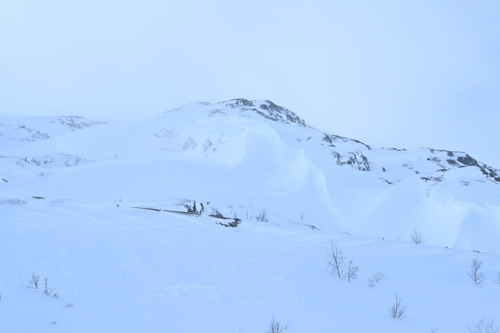 C’était prévu, le soleil nous a inondé de sa belle lumière hier soir et aujourd’hui c’était dodo dans les nuages. Un mix du coin avec pluie/neige, mini tempête avec belles rafales et rayons lumineux éparses … bref le temps de la Norvège à cette époque ! Les températures remontent , elles sont toujours positives à présent et le froid nous manque parfois… on aime bien quand sa pique !