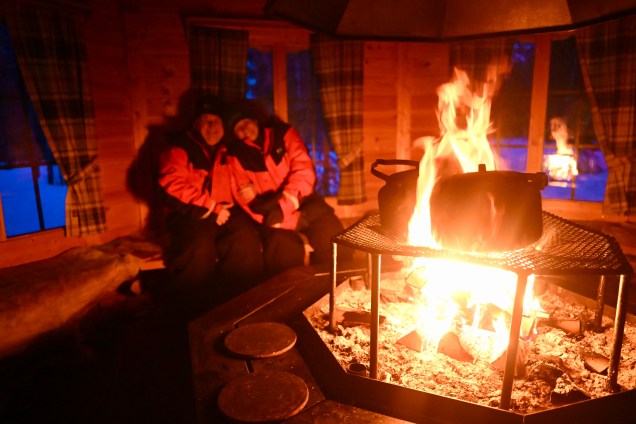 Pour clore ce loto de la vadrouille gagné aujourd’hui , chien de traîneau et les éruptions solaires des aurores boréales ! Quoi dire, nous avons même gagné le numéro complémentaire ! Une belle ambiance en plus au coin du feu en guise d’entracte, nous sommes comblés et heureux !