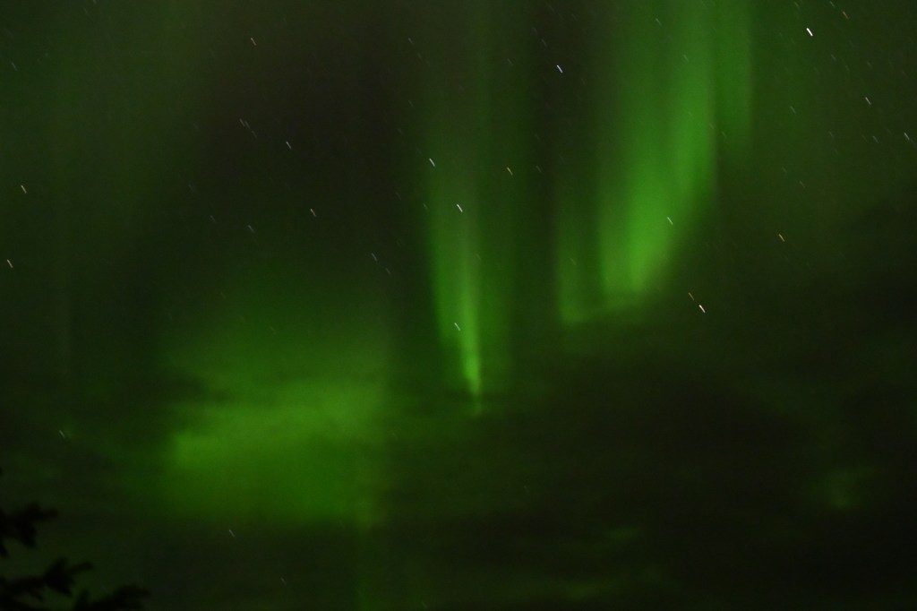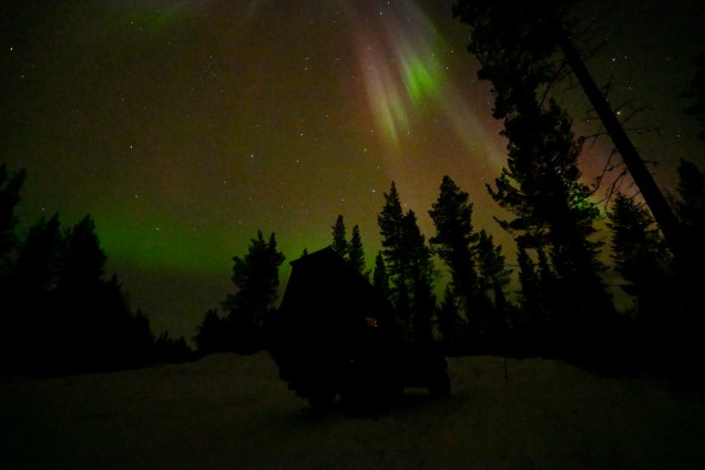 Un souvenir inoubliable ! 💓Le bivouac pour TinHux 2, ce soir c’est au bord d’un lacet sous les aurores !!!Elle arrivent gentiment… Spectacle lumière sur le lac s’il vous plaît !Les yeux sous le charme ! Une belle intensité … Ça fuse de partout avec un ciel inondé de vert !Cela se termine en douceur, de quoi passer une nuit froide au coeur réchauffé 😽