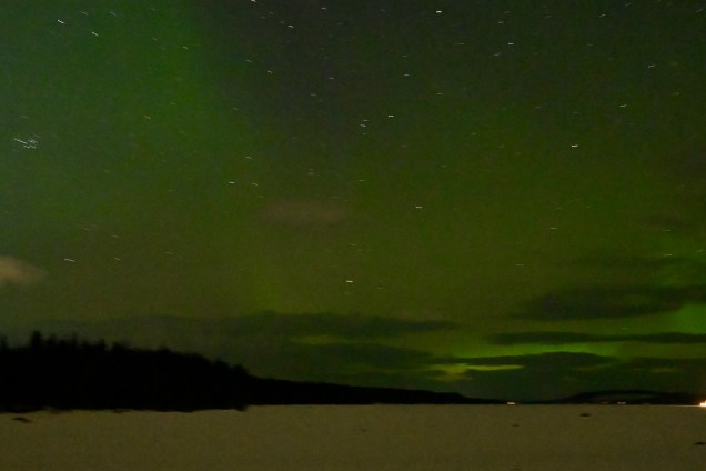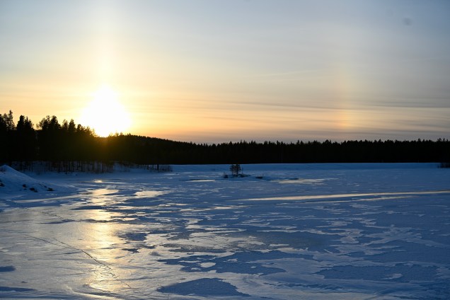 Nous filons vers le Sud avec comme témoin la lattitude du cercle polaire que nous avons passée mais dans l’autre sens que celle de Rovaniemi lors de notre montée vers ,le Nord. Petite déception ? Certes nous sommes sur la route du retour mais la magie de la Laponie est encore bien là … les lacs gelés , la neige , la forêt et puis ce soir des putaingues d’aurore boréales, une dinguerie !
