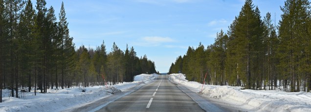 Kiruna > Quelque part dans la forêt (66.49 Nord / 19.69 ° Est ) : 223 kms . Route sèche