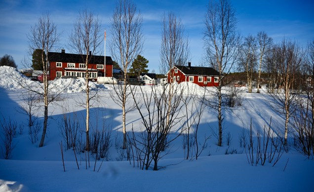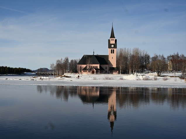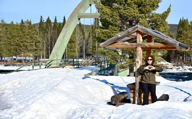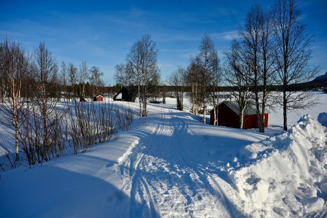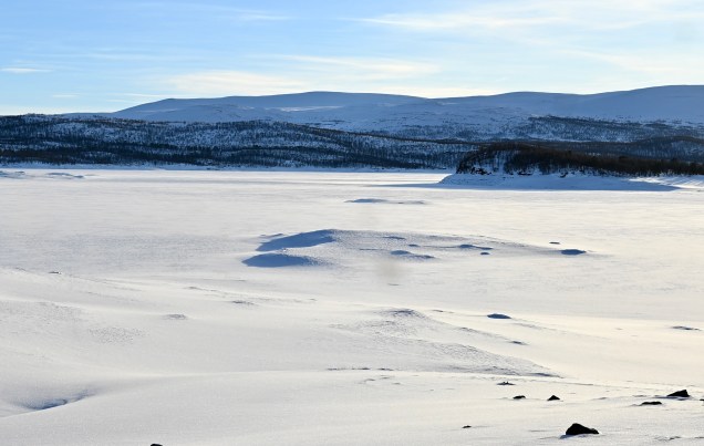 On déjeune à Arvidsjaur et sa somptueuse église …Maman et fille à la promenade ! Nous quittons la forêt , pour remonter au Nord vers les montagnes ! Miroir d’église ! Jack ville, un silo joli village perdu dans la nature De jolies maison , rouges comme d’habitude ! Toujours de la neige ! Petite cabane dans le blanc … Le lac de Hormavan avec ses petits îlots coincés par la neige et la glace . C’est le lac le plus profond de Suède! Leïla est contente, elle a retrouvé la neige sur la route ! Cliquez ci dessous pour la vidéo sur la neige !