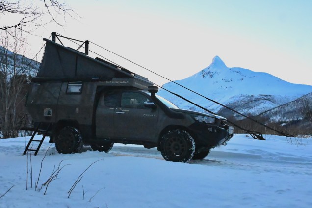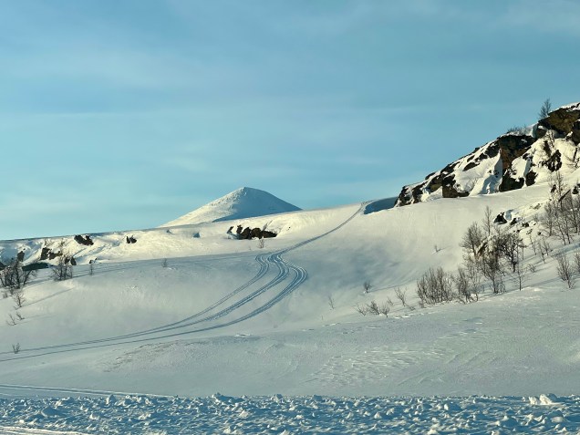 L’attelage parfait en Suède … la voiture, la remorque et à l’intérieur le moto neige ! De retour de balade ! Il faut dire que les traces à travers la montagne font envie ! Un spot parfait pour les machines !Les montagnes en fin de soiréeAvec le soleil couchant , nous passons un col magnifique ! Nous repassons en Norvège histoire de terminer notre boucle dans les Alpes Suédoises ! Carte de notre boucle, avec 700 kms de plus mais cela en valait largement la peine ! Beaucoup de glace encore en altitude ! Les sommets éclairés par le soleil couchant … Sommets atypiques ! Encore un super bivouac ce soir !Délicieuse omelette ce soir ! Leïla est prête pour top chef ! Notre bivouac toujours bien placé sous les aurores !Une super immensitéDe magnifiques futées ! Aurores dans les montagnes, ça nous change de décor ! On ne se lasse pas du spectacle ! De quoi passer une bonne nuit sous le couple aurores-étoiles !