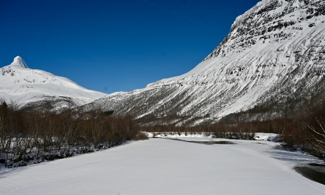 Dans la forêt > Junkerdal (66.81 Nord / 15.56 ° Est ) : 388 kms . Route sèche + neige (50 kms)