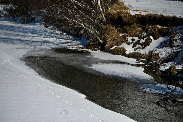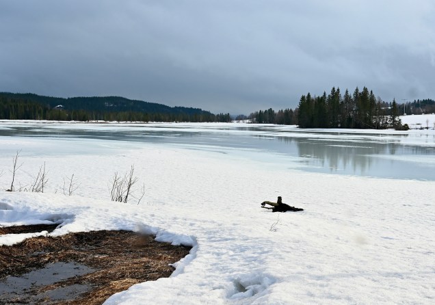 Les lacs sont en pleine transformation en ce moment, la glace fond et la magie du manteau blanc parfaitement plat commence à disparaître. Mais le mix eau-glace reste quand même attachant comme un peu la mi-marée chez nous avec la terre et l’eau entrelacée !