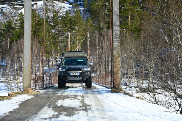 A présent nous virons à gauche vers le Sud, pour longer les fjords Norvège côté Atlantique … encore de nouveaux paysages grandioses à partager avec vous ! Ce soir notre bivouac est encore génial, nous sommes entre les montagnes près d’un pont suspendu permettant une randonnée… un bel écrin pour les aurores de ce soir qui n’ont pas manqué de nous éclairer ! Le bonheur …
