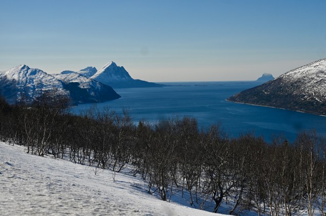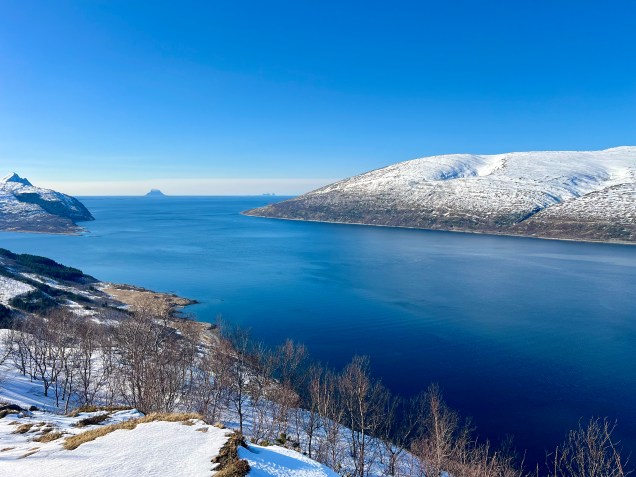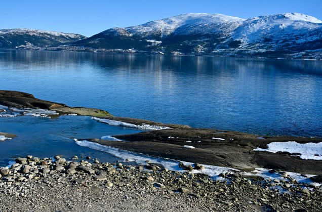 Avec 27 jours consécutifs dans la neige, notre échelle de cellule est dans la terre ce soir ! Ce qui veux dire que la neige nous manque déjà et que petit à petit on rentre vers notre maison sans roulettes ! Cela ne nous a pas empêché de vivre à nouveau une merveilleuse journée notamment en empruntant la fameuse route côtière 17 où les fjords se déroulent et s’enroulent à longueurs de kilomètres … saisissant !