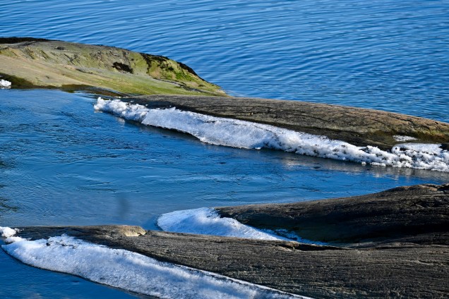 Fin de la fameuse route 17 aujourd’hui , parfois loin de la mer mais toujours dans un paysage intense en traversant un paysage champêtre et bucolique de prairies, lacs et forêts . Certes, ce n’était pas l’endroit le plus spectaculaire du parcours 17 mais pas désagréable non plus de retrouver parfois la neige et les lacs mi-glacés , mi- eau libre . Le temps lui étant instable avec une mini tempête nous a fais bien ressentir la météo du coin la plus courante… autochtone dixit !