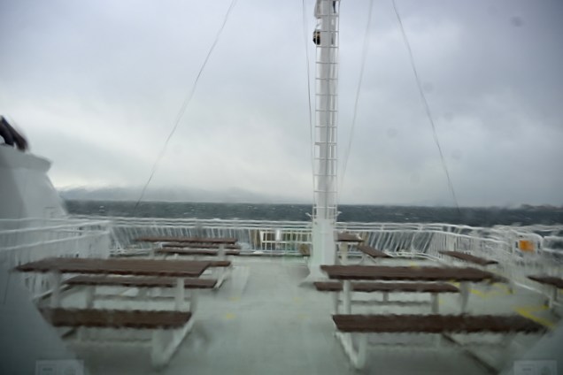 Tjøtta > Steinkjer ( 64.01 Nord / 11.39° Est ) : 266 kms + 25 Milles de ferry sur l’eau . Route humide