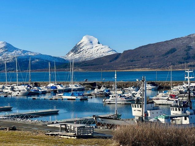 On repasse le cercle polaire , cette fois c’est définitif au Sud .. snif !😢 Sandwich du midi… saveur locale avec du saumon ! On retrouve l’eau libre de l’Atlantique ! Un peu de terre, un peu de neige et de l’eau bleu du fjord … joli ! 🥰 Des îles de partout ! Un des fjords … majestueux ! Une eau qui s’enfonce entre les montagnes ! C’est beauuuuu ! Les maisons du Cap Ferret n’ont pas cette vue ! Des sommets enneigées déchiquetés, une eau bleue , quel décor devant sa fenêtre ! Le petit port de Nesna … Le ferry nous attends ! TinHux 2 on board ! Pour une fois il se fait promener Mais pas n’importe où : dans le fjord et entre les îles ! Un joli pont suspendu !On passe pile entre les piles ! TinHux 2 tricote … Pour se faire sa place au bivouac ! Merci le soleil pour la lumière du jour … Merci la belle aurore ..+; sûrement la dernière !