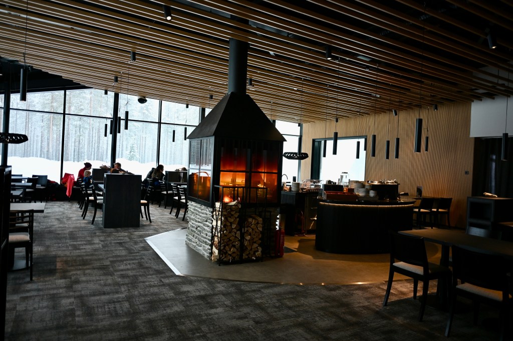 Après un bon burger Finlandais, nous nous sommes mis en quête de trouver une ferme de rennes. On nous a d’abord envoyé V à l’arrière d’un supermarché pour finalement trouver une statue de renne géante , on a été bien ridicules ! Finalement nous avons trouvé le lieu d’élevage mais il fallait réserver pour la visite ! C’est un peu le problème dans ce coin où le tourisme est de masse avec des organismes qui organisent tout de A à Z . Ce n’est pas notre style de voyage, cela enlève toute spontanéité aux visites ! Choisir une activité sur papier glacé ne nous stimule pas spécialement et ici ce n’est pas simple de faire autrement. Chien de traîneaux, rennes, scooter des neiges, pêche au trou, diverses visites peuvent devenir très chères en passant par ces organismes et impossible de les court-circuiter car tout le monde travaille main dans la main . On se débrouille comme un peu en déjouant les stratagèmes de ces Safari Market… une bien vilaine expression !
