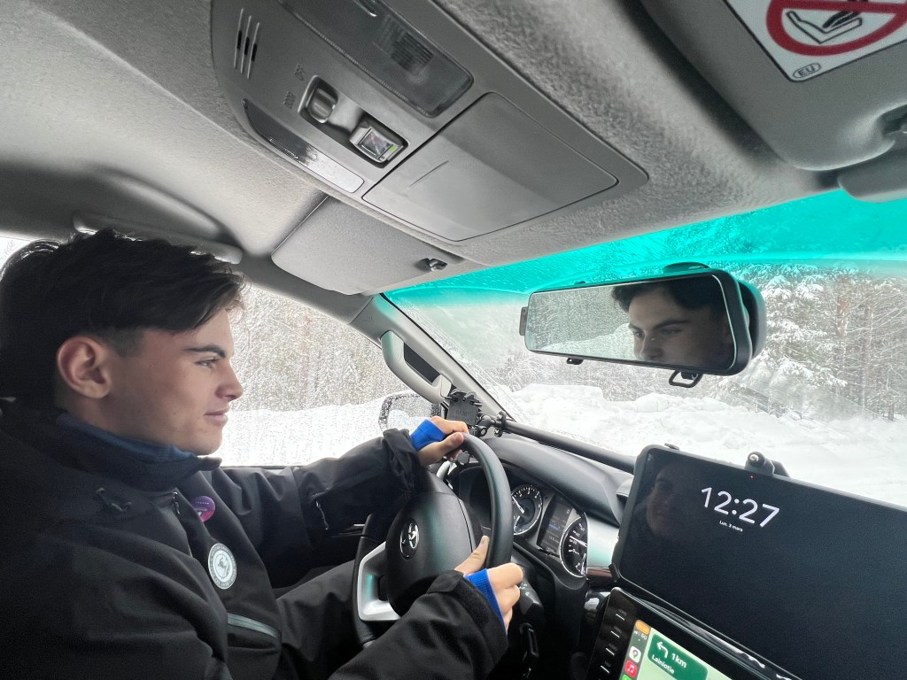 Belle petite couche de neige ce matin encore et nous voilà parti vers Snow Village qui est un endroit magique mêlant neige et glace. Tous les ans c’est la surprise qu’on attend : quel sera la thème du Snow Village ? En effet, chaque année il est reconstruit avec un nouveau design. Au cours de cet hiver c’est le monde sous-marin et ses diverses espèces, des baleines et des tortues aux hippocampes et aux pieuvres qui est présenté . La route pour y parvenir est assez magique avec cette omniprésence blanche qu’est la neige, à chaque seconde, on s’émerveille ! Nous Loulous chacun leur tour, on conduit sur le manteau neigeux afin qu’ils aient cette expérience ! Une fois de plus « heureusement qu’il y a les clous ! «