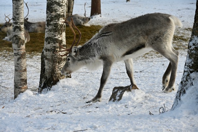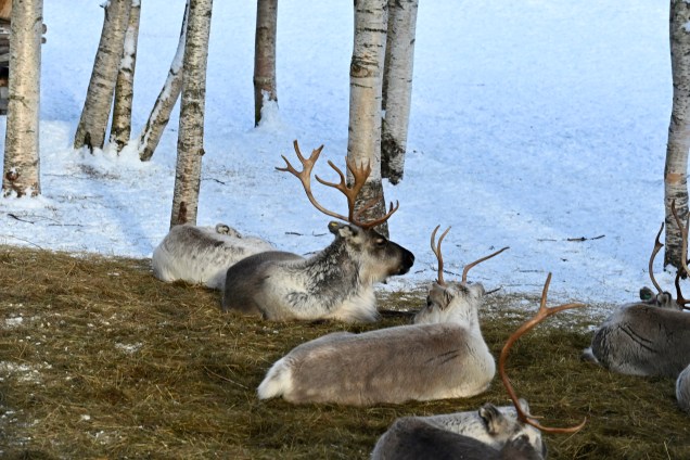 A propos de rennes, nous nous sommes arrêtés dans une ferme où nous avons profités de ces animaux majestueux et gracieux qui règnent en maître sur ces terres nordiques. En Finlande, il y a très peu de rennes sauvages, la plupart des appartiennent à des éleveurs. Les rennes vivent en liberté d’avril à Novembre et sont parqués et nourrit durant l’hiver. Beaucoup de choses sont utilisées sur le renne notamment sa peau , ses bois et sa viande . Le renne, est un animal robuste pouvant peser jusqu’à 180 kg pour un mâle adulte. Son pelage peut être brun, blanc ou gris, sa queue est courte. Mâles et femelles portent des bois recouverts d’un velours l’été, qu’ils perdent à l’automne. Les bois prennent alors une teinte rouge, puis brun foncé. . Le bois des mâles tombe au début de l’hiver et celui des femelles plus tard au printemps. Les sabots sont étonnamment larges et donc parfaitement utile pour la marche dans la neige. Bref un animal bien adapté à l’environnement nordique !